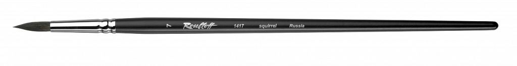 О серии: кисти серии «1417» изготавливаются из волоса белки. Серия представлена кистями круглой формы. Серийно выпускаются кисти следующих размеров: 0, 1, 2, 3, 4, 5, 6, 7, 8, 9, 10, 11, 12. Характеристика: для производства используется волос, собранный с хвостов белок. Пучок кистей имеет круглую форму. Кончик кисти заострен. Кисти выполнены на длинной ручке черного цвета. Крепление пучка к древку выполнено хромированной медной обоймой с двойным обжимом. Применение: кисти этой серии в основном используются для работ акварелью и гуашью. На усмотрение художника возможно использование кистей в других техниках живописи. Производство: изготавливаются под брендом Roubloff, который был основан в 1988 году в Кировской области (Россия). Кировская область – один из центров народных промыслов в России. Здесь же занимаются разведением пушных зверей, чей мех является идеальным материалом для кистей. Продукция бренда Roubloff – кисти самого разного назначения, размера и формы. Весь материл, используемый при производстве продукции, проходит отбор, чтобы каждый клиент получил лучшие кисти для своих работ. Кисти марки Roubloff являются одними из лучших в России.