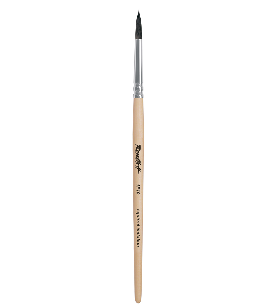 О серии: кисти серии «1F10» максимально похожи по своим свойствам на кисти, изготовленные из натурального ворса белки. Серийно выпускаются кисти следующих размеров: 0, 1, 2, 3, 4, 5, 6, 7, 8, 9, 10, 11, 12. Характеристика: кисти серии «1F10» изготавливаются специально подобранных синтетических волокон, которые по своим свойствам напоминают натуральный ворс белки. Замена натурального ворса синтетическим делает кисть более долговечной. Кисти серии «1F10» хорошо впитывают воду и держат форму. Кисти выполнены на короткой лакированной ручке. Применение: кисти этой серии в основном используются для работ водорастворимыми красками (акварель, гуашь). На усмотрение художника возможно использование кисти в других техниках живописи. Производство: изготавливаются под брендом Roubloff, который был основан в 1988 году в Кировской области (Россия). Кировская область – один из центров народных промыслов в России. Здесь же занимаются разведением пушных зверей, чей мех является идеальным материалом для кистей. Продукция бренда Roubloff – кисти самого разного назначения, размера и формы. Весь материл, используемый при производстве продукции, проходит отбор, чтобы каждый клиент получил лучшие кисти для своих работ. Кисти марки Roubloff являются одними из лучших в России.