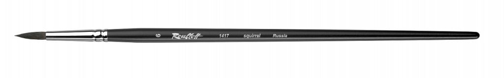 О серии: кисти серии «1417» изготавливаются из волоса белки. Серия представлена кистями круглой формы. Серийно выпускаются кисти следующих размеров: 0, 1, 2, 3, 4, 5, 6, 7, 8, 9, 10, 11, 12. Характеристика: для производства используется волос, собранный с хвостов белок. Пучок кистей имеет круглую форму. Кончик кисти заострен. Кисти выполнены на длинной ручке черного цвета. Крепление пучка к древку выполнено хромированной медной обоймой с двойным обжимом. Применение: кисти этой серии в основном используются для работ акварелью и гуашью. На усмотрение художника возможно использование кистей в других техниках живописи. Производство: изготавливаются под брендом Roubloff, который был основан в 1988 году в Кировской области (Россия). Кировская область – один из центров народных промыслов в России. Здесь же занимаются разведением пушных зверей, чей мех является идеальным материалом для кистей. Продукция бренда Roubloff – кисти самого разного назначения, размера и формы. Весь материл, используемый при производстве продукции, проходит отбор, чтобы каждый клиент получил лучшие кисти для своих работ. Кисти марки Roubloff являются одними из лучших в России.