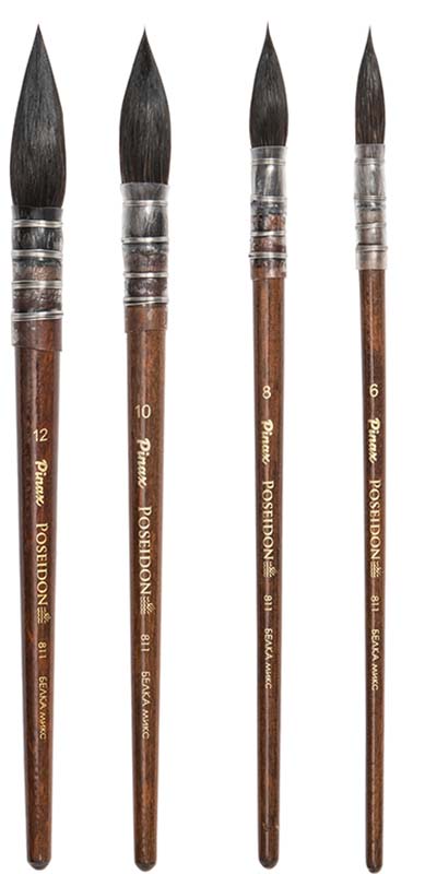 О серии: Poseidon - это круглые кисти производства Pinax, которые состоят из волоса белки и японской синтетики, имитирующей волос белки. Волос кисти подобран специально для работы жидкими красками и тушью. Эти кисти идеально подойдут для различных акварельных техник живописи, за счет своей формы и способности удержать много краски. Так же эти кисти будут интересны любителям Японской и Китайской живописи. Кисти оснащены пленочной обоймой на проволоке (так называемое "французское" крепление) Кистью с такой обоймой легко писать детали, выполнять заливки и моделировать объём. Номер кисти равен диаметру кисти в миллиметрах, в месте где ворс выходит из обоймы. Ручка кистей изготовлена из березы, окрашена под орех и покрыта глянцевым лаком. Применение: кисти серии подходят для декоративно-оформительского творчества и хобби. Производство: данный товар представлен брендом Pinax. Pinax — мировой бренд товаров, который представлен на российском рынке с начала XXI века. Изначально компания производила только кисти для художественных работ, но затем расширила свое производство и не потеряв качество своей продукции начала производить холсты, мольберты и аксессуары для художников. Сейчас ассортимент включает в себя большое количество наименований.