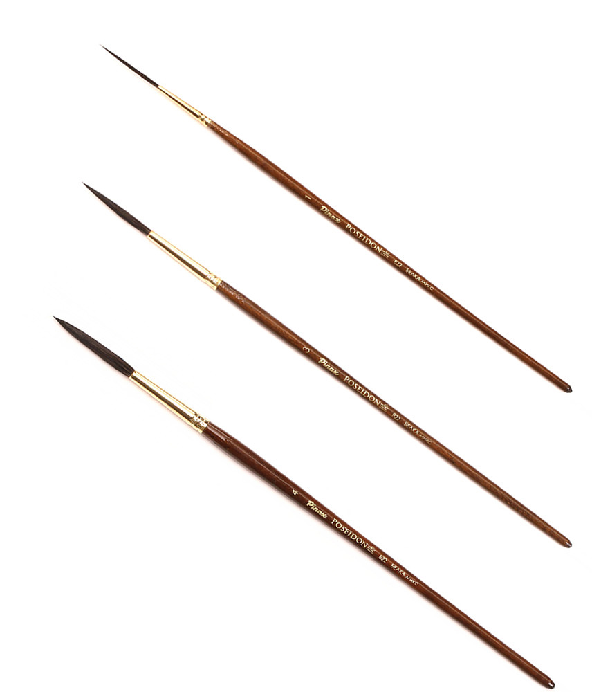 О серии: Poseidon 822 - это кисть лайнер с пучком из смеси натуральной белки и высококачественной японской синтетики. Такая кисть идеально подходит для тонких продолжительных линий и прорисовки мелких деталей. Кисть оснащена медной втулкой золотого цвета, короткая ручка (европейский стандарт 165 мм) выполнена из березы, покрашена под орех и покрыта глянцевым лаком. Применение: кисти серии подходят для художественных работ, декоративно-оформительского творчества и хобби. Производство: данный товар представлен брендом Pinax. Pinax — мировой бренд товаров, который представлен на российском рынке с начала XXI века. Изначально компания производила только кисти для художественных работ, но затем расширила свое производство и не потеряв качество своей продукции начала производить холсты, мольберты и аксессуары для художников. Сейчас ассортимент включает в себя большое количество наименований