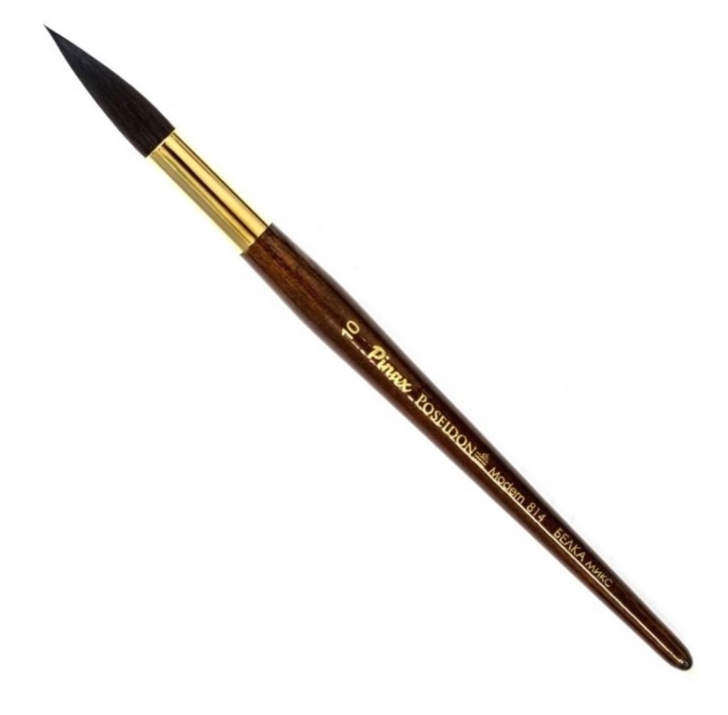 Кисти серии "Poseidon 814" — это последняя разработка от производителя Pinax. Особенностью этой серии является обойма — укороченная латунная золотистая втулка, которая является заменой французского крепления. Инновационная технология крепления втулки к короткой ручке кисти без обжима, которая не мешает хвату кисти в области ближе к ворсу и создает баланс для комфортной работы художника. В линии кистей "Poseidon 814" была сохранена уникальная остроконечная форма пучка кисти Poseidon 801 c французским креплением, которая позволяет выполнить всю работу одним номером - переходя от заливок к деталям. Состав волоса также остался на прежнем высоком уровне — это смесь натурального беличьего волоса и высокотехнологичной синтетической имитации белки японского производства. Уникальность заключается в тщательно подобранной пропорции, в которой смешиваются синтетика и волос белки. Синтетика в составе кисти играет очень важную роль - именно благодаря ей кисть приобретает дополнительную упругость и управляемость, так недостающую кистям сделанным только из белки, при этом, сохраняет способность удерживать достаточное количество краски, равномерно отдает краску на основу, не ставит кляксу.
