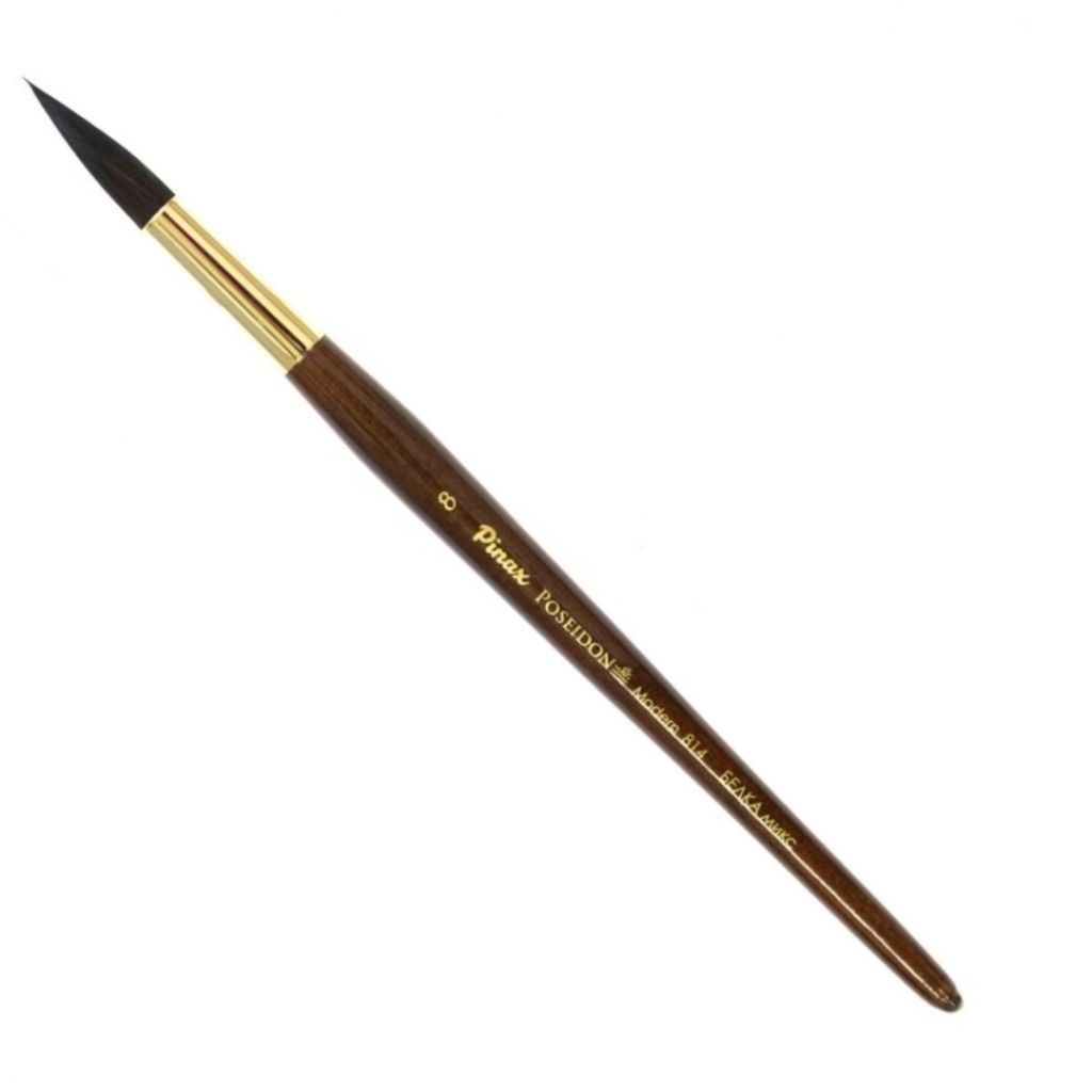 Кисти серии "Poseidon 814" — это последняя разработка от производителя Pinax. Особенностью этой серии является обойма — укороченная латунная золотистая втулка, которая является заменой французского крепления. Инновационная технология крепления втулки к короткой ручке кисти без обжима, которая не мешает хвату кисти в области ближе к ворсу и создает баланс для комфортной работы художника. В линии кистей "Poseidon 814" была сохранена уникальная остроконечная форма пучка кисти Poseidon 801 c французским креплением, которая позволяет выполнить всю работу одним номером - переходя от заливок к деталям. Состав волоса также остался на прежнем высоком уровне — это смесь натурального беличьего волоса и высокотехнологичной синтетической имитации белки японского производства. Уникальность заключается в тщательно подобранной пропорции, в которой смешиваются синтетика и волос белки. Синтетика в составе кисти играет очень важную роль - именно благодаря ей кисть приобретает дополнительную упругость и управляемость, так недостающую кистям сделанным только из белки, при этом, сохраняет способность удерживать достаточное количество краски, равномерно отдает краску на основу, не ставит кляксу.
