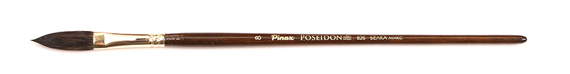 О серии: Poseidon 826 - это кисти производства Pinax, которые состоят из волоса белки и японской синтетики, имитирующей волос белки. Форма пучка - овальная "язык". Волос кисти подобран специально для работы жидкими красками и тушью. Эти кисти идеально подойдут для различных акварельных техник живописи. Номер кисти равен диаметру кисти в миллиметрах, в месте где ворс выходит из обоймы. Кисть оснащена медной втулкой золотого цвета, короткая ручка (европейский стандарт 165 мм) выполнена из березы, покрашена под орех и покрыта глянцевым лаком. Применение: кисти серии подходят для декоративно-оформительского творчества и хобби. Производство: данный товар представлен брендом Pinax. Pinax — мировой бренд товаров, который представлен на российском рынке с начала XXI века. Изначально компания производила только кисти для художественных работ, но затем расширила свое производство и не потеряв качество своей продукции начала производить холсты, мольберты и аксессуары для художников. Сейчас ассортимент включает в себя большое количество наименований.