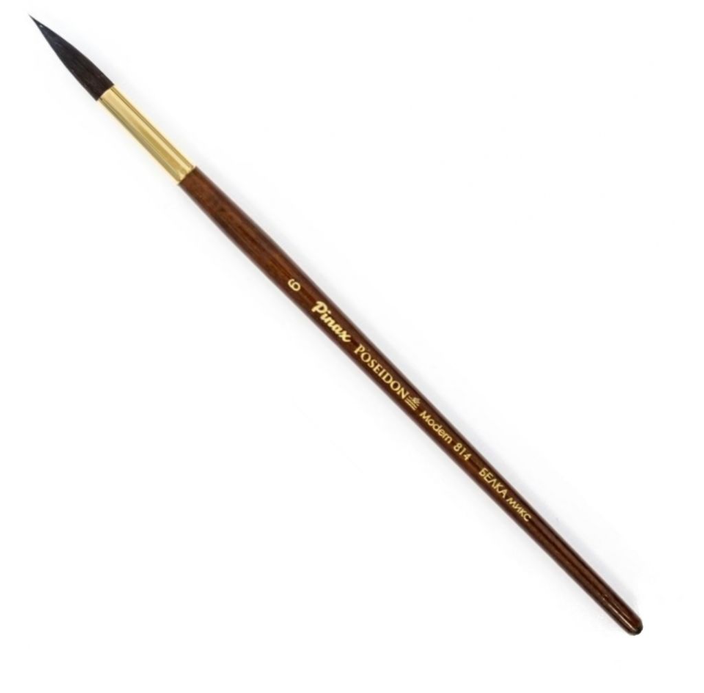 Кисти серии "Poseidon 814" — это последняя разработка от производителя Pinax. Особенностью этой серии является обойма — укороченная латунная золотистая втулка, которая является заменой французского крепления. Инновационная технология крепления втулки к короткой ручке кисти без обжима, которая не мешает хвату кисти в области ближе к ворсу и создает баланс для комфортной работы художника. В линии кистей "Poseidon 814" была сохранена уникальная остроконечная форма пучка кисти Poseidon 801 c французским креплением, которая позволяет выполнить всю работу одним номером - переходя от заливок к деталям. Состав волоса также остался на прежнем высоком уровне — это смесь натурального беличьего волоса и высокотехнологичной синтетической имитации белки японского производства. Уникальность заключается в тщательно подобранной пропорции, в которой смешиваются синтетика и волос белки. Синтетика в составе кисти играет очень важную роль - именно благодаря ей кисть приобретает дополнительную упругость и управляемость, так недостающую кистям сделанным только из белки, при этом, сохраняет способность удерживать достаточное количество краски, равномерно отдает краску на основу, не ставит кляксу.