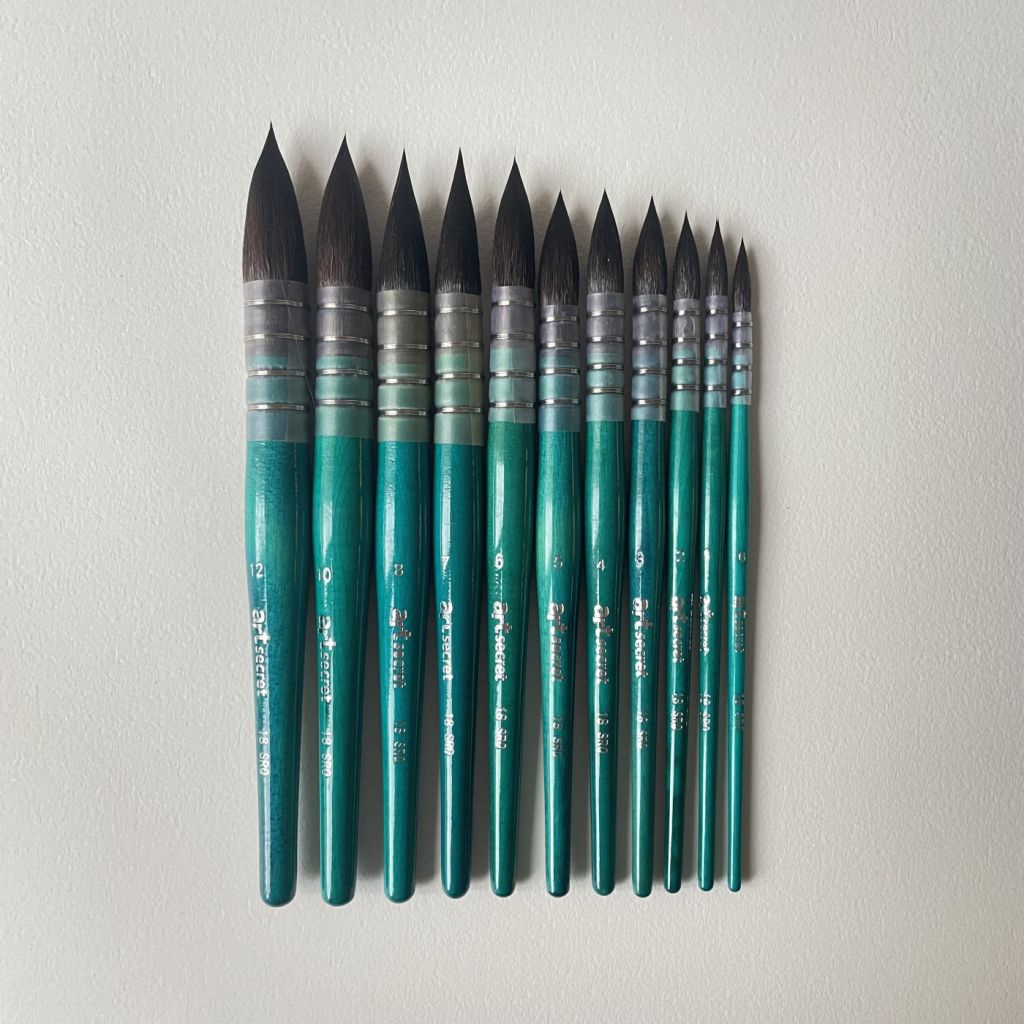 Кисти серии 18 SRQ от бренда Art Secret созданы вручную специально для работы акварелью. Объёмный пучок кисти из беличьего ворса и обладает оптимальной мягкостью и упругостью, обладает отличными впитывающими свойствами, необходимыми для акварельной живописи. Французский тип крепления также позволяет набирать краску по всей длине ворса. Кисти отлично держат форму, а благодаря заострённому кончику и широкому размерному ряду позволяют не только создавать большие заливки и цветовые пятна, но и работать с деталями.