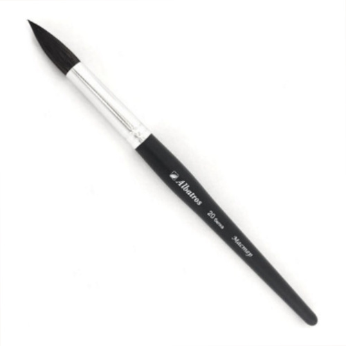 О серии: серия кистей «Мастер» представлена художественными кистями с различным ворсом. Все кисти выпускаются поштучно. Характеристика: данные кисти изготовлены из волоса сибирской белки. Кисти производятся из материалов, прошедших контроль и специальную подготовку. Ворс кистей отличается мягкостью и эластичностью, он хорошо набирает воду и с легкостью переносит ее на поверхность работы. Пучок этих кистей круглой формы и заострен к кончику. Диаметр пучка кистей, в зависимости от номера кисти, варьируется от 1 до 10,5 миллиметров. Ворс надежно закреплен цельнотянутой обоймой. Кисти выполнены на удлиненных деревянных ручках, покрытых черной эмалью. Применение: кисти из ворса белки хорошо проявляют себя при работе с красками на водной основе. Производство: изготавливается компанией «Альбатрос», которая начала свою деятельность в 1989 году в городе Новосибирск. Компания хорошо зарекомендовала себя на рынке художественных товаром. Она постоянно работает над расширением своего ассортимента. Сегодня «Альбатрос» выпускает художественные кисти, холсты, ящики для красок и различные аксессуары для художников.