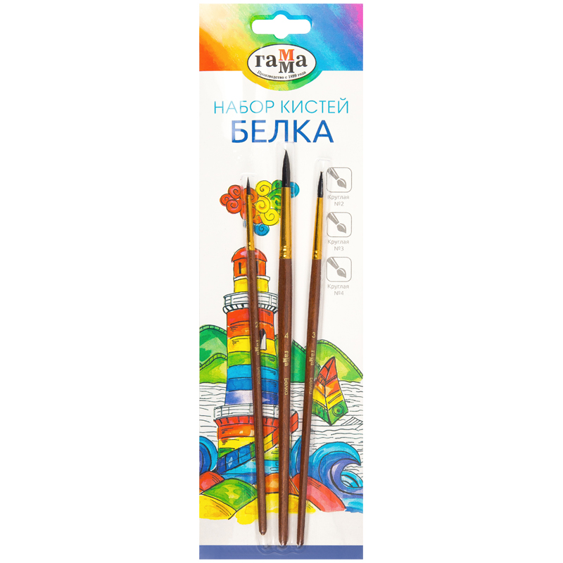 Набор круглых кистей из меха белки №2, 3, 4 в блистере. Белка — самый мягкий и пластичный ворс. Благодаря способности образовывать острый кончик даже толстыми беличьими кистями можно прорисовать мелкие детали. Идеальна для работы с акварелью, подходит для красок на водной основе. Белке отдают предпочтение опытные художники и ценители материалов для творчества самого высокого качества.