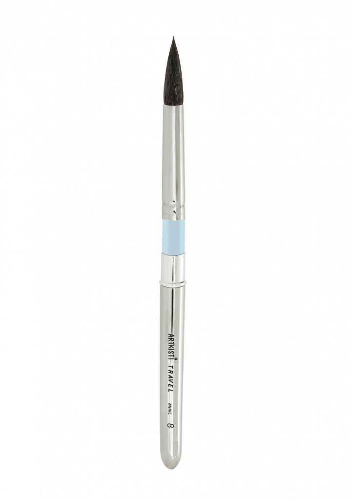 О серии: профессиональные кисти для пленэрной живописи. Кисти изготавливаются профессиональными мастерами и только из тщательно подобранного ворса. Особенностью данной серии является наличие футляра, который используется в качестве ручки кисти. По завершению работы, рабочая часть кисти отделяется и помещается внутрь полой металлической ручки. Такая особенность делает кисти данной серии идеальными для работы на пленэрах и вне студии. Характеристики: кисти изготовлены из смешанного ворса белки и синтетики. Пучок круглой формы с заостренной вершинкой закреплен металлической обоймой на короткой ручке. Рабочая часть кисти помещается металлический футляр. Использование синтетического ворса делает кисти более износоустойчивыми, сохраняя оптимальный баланс мягкости и упругости. Применение: для работ акварелью и другими красками на водной основе. На усмотрение художника, могут использоваться для работы различными видами красок. Производство: изготавливается компанией «Альбатрос», которая начала свою деятельность в 1989 году в городе Новосибирск. Компания хорошо зарекомендовала себя на рынке художественных товаром. Она постоянно работает над расширением своего ассортимента. Сегодня «Альбатрос» выпускает художественные кисти, холсты, ящики для красок и различные аксессуары для художников.