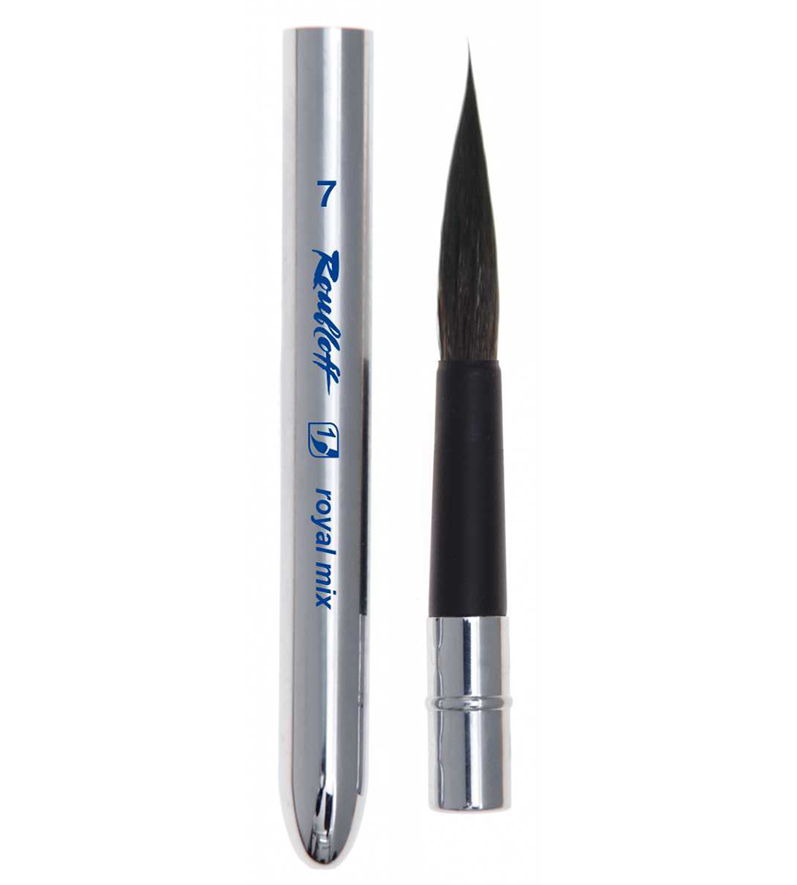 Roubloff royal mix - уникальная смесь из 3-х видов ворса разработанная на собственном экспериментальном участке Roubloff. Смесь содержит премиальный волос натуральной белки с непревзойдёнными природными свойствами набирать и удерживать воду, беличий волос придает комфортную для работы форму кисти с «брюшком». Смесь так же содержит два вида синтетического волоса, придающие волосяному пучку упругость и управляемость вершинки кисти. Упругий острейший кончик может рисовать тонкие контролируемые линии и мелкие детали, а сама кисть удерживает много воды и краски, подходит для заливок, лессировок и скетчей. Кисть в складном формате удобно взять с собой в путешествие или на пленэр. Фурнитура премиального качества, надёжный складной механизм не разнашивается со временем. В колпачке ручки имеется отверстие для вентиляции кисти. Кисть удобно держать за счёт: - утолщённого и нескользкого места хвата; - тактильно-приятного покрытия Soft-touch; - комфортного места соединения составных частей кисти; - продуманного по центру тяжести дизайна ручки.