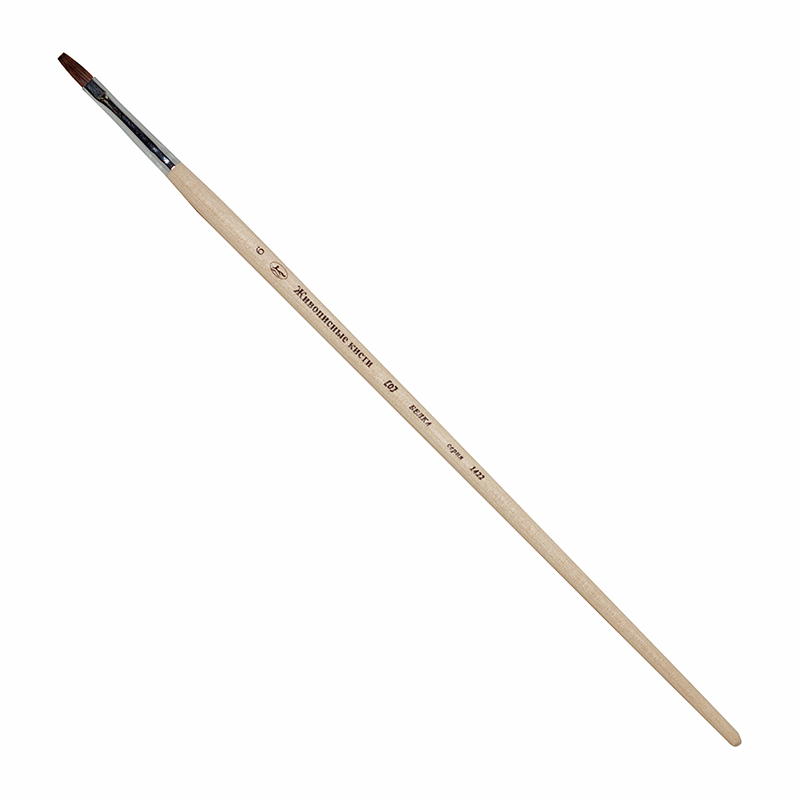 О серии: кисти серии «1450» изготавливаются из волоса белки. Серия представлена кистями плоской формы. Серийно выпускаются кисти следующих размеров: 4, 6, 8, 10, 12, 14, 16, 18, 20, 22, 24. Характеристика: для производства используется волос, собранный с хвостов белок. Пучок кистей удлинён и имеет плоскою форму. Кисти выполнены на длинной матовой ручке пропитанной лаком. Крепление пучка к древку выполнено хромированной медной обоймой с двойным обжимом. Применение: кисти этой серии в основном используются для работ акварелью и гуашью. Кистями такой формы удобно прорисовывать прямые линии. На усмотрение художника возможно использование кистей в других техниках живописи.