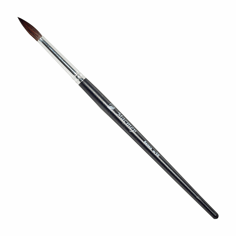 О серии: серия кистей «Мастер» представлена художественными кистями с различным ворсом. Все кисти выпускаются поштучно. Характеристика: данные кисти изготовлены из волоса сибирской белки. Кисти производятся из материалов, прошедших контроль и специальную подготовку. Ворс кистей отличается мягкостью и эластичностью, он хорошо набирает воду и с легкостью переносит ее на поверхность работы. Пучок этих кистей круглой формы и заострен к кончику. Диаметр пучка кистей, в зависимости от номера кисти, варьируется от 1 до 10,5 миллиметров. Ворс надежно закреплен цельнотянутой обоймой. Кисти выполнены на удлиненных деревянных ручках, покрытых черной эмалью. Применение: кисти из ворса белки хорошо проявляют себя при работе с красками на водной основе. Производство: изготавливается компанией «Альбатрос», которая начала свою деятельность в 1989 году в городе Новосибирск. Компания хорошо зарекомендовала себя на рынке художественных товаром. Она постоянно работает над расширением своего ассортимента. Сегодня «Альбатрос» выпускает художественные кисти, холсты, ящики для красок и различные аксессуары для художников.