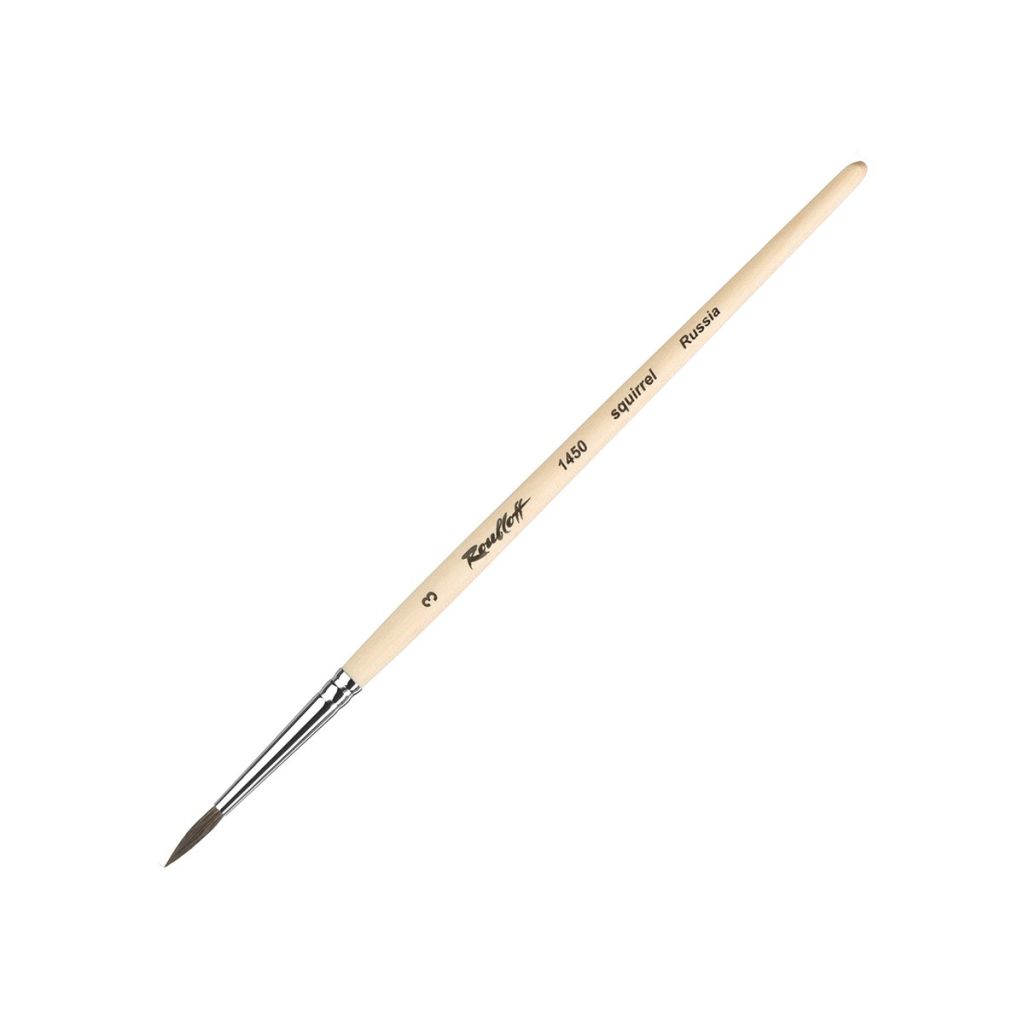 О серии: кисти серии «1450» изготавливаются из волоса белки. Серия представлена кистями круглой формы. Серийно выпускаются кисти следующих размеров: 0, 1, 2, 3, 4, 5, 6, 7, 8, 9, 10, 11, 12. Характеристика: для производства используется волос, собранный с хвостов белок. Пучок кистей имеет круглую форму. Кончик кисти имеет наполненную форму – заострен незначительно. Кисти выполнены на длинной матовой ручке пропитанной лаком. Крепление пучка к древку выполнено хромированной медной обоймой с двойным обжимом. Применение: кисти этой серии в основном используются для работ акварелью и гуашью. На усмотрение художника возможно использование кистей в других техниках живописи. Производство: изготавливаются под брендом Roubloff, который был основан в 1988 году в Кировской области (Россия). Кировская область – один из центров народных промыслов в России. Здесь же занимаются разведением пушных зверей, чей мех является идеальным материалом для кистей. Продукция бренда Roubloff – кисти самого разного назначения, размера и формы. Весь материл, используемый при производстве продукции, проходит отбор, чтобы каждый клиент получил лучшие кисти для своих работ. Кисти марки Roubloff являются одними из лучших в России.