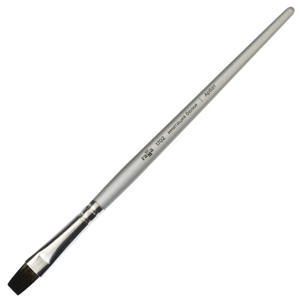 Художественные кисти ГАММА серии «Арбат» изготовлены из мягкой синтетики имитирующей волос белки. Кисти предназначены для работы акварельными, гуашевыми и акриловыми красками. Тончайший синтетический волос, используемый при производстве кистей, позволяет хорошо набирать и отдавать краску, при этом отлично держит форму и острый кончик, кисть очень упругая и позволяет контролировать мазок. Кистью легко писать детали, выполнять заливки и моделировать объём. Бережно взаимодействует с бумагой, подходит для работы в технике лессировки. Номер кисти соответствует ширине пучка кисти в миллиметрах.