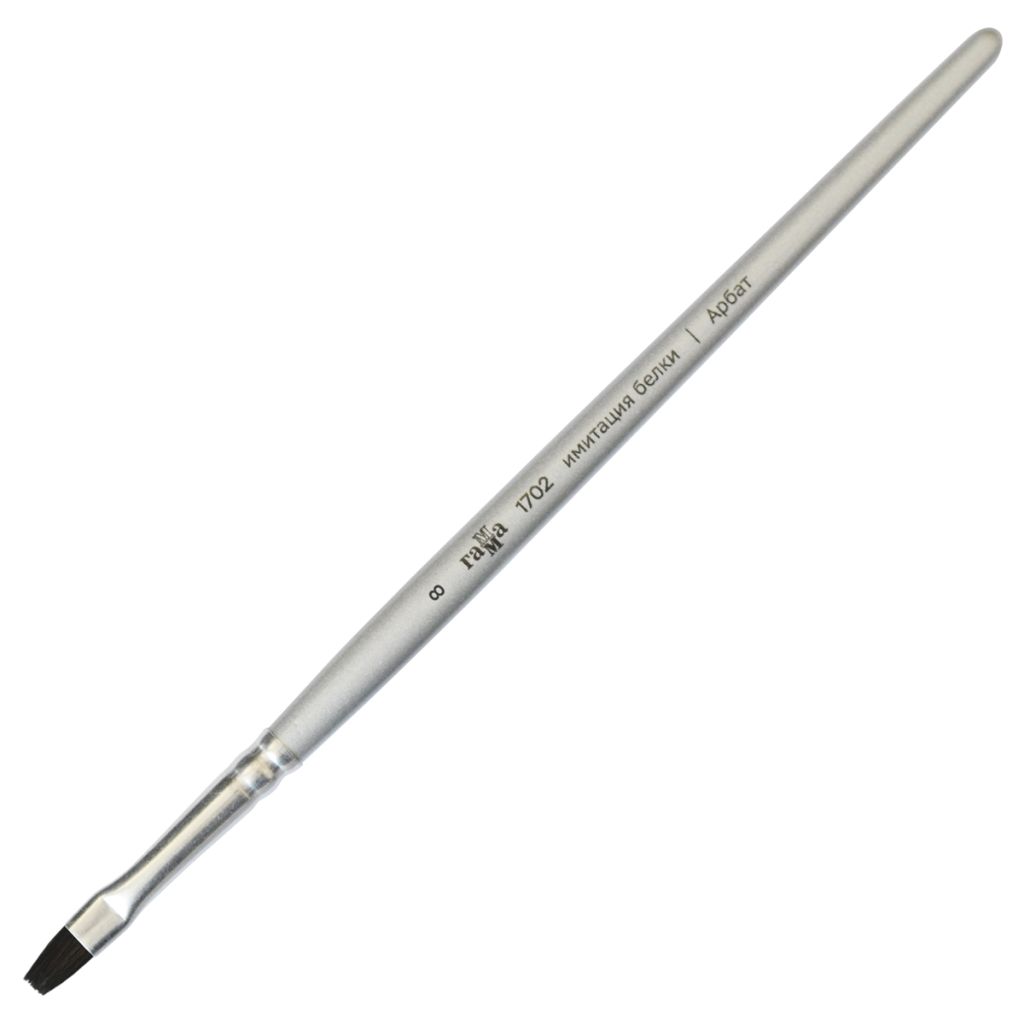 Художественные кисти ГАММА серии «Арбат» изготовлены из мягкой синтетики имитирующей волос белки. Кисти предназначены для работы акварельными, гуашевыми и акриловыми красками. Тончайший синтетический волос, используемый при производстве кистей, позволяет хорошо набирать и отдавать краску, при этом отлично держит форму и острый кончик, кисть очень упругая и позволяет контролировать мазок. Кистью легко писать детали, выполнять заливки и моделировать объём. Бережно взаимодействует с бумагой, подходит для работы в технике лессировки. Номер кисти соответствует ширине пучка кисти в миллиметрах.