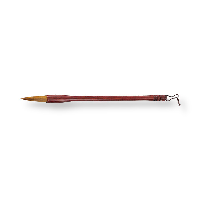 Классическая кисть для каллиграфии используется для работы с тушью. Рабочая часть кисти изготовлена из натурального ворса волка. Ворс характеризуется сочетанием мягкости и упругости. Кисть хорошо собрана, в смоченном состоянии держит тонкий кончик. Характеристики: Материалы: волчий ворс, мореное дерево. Общая длина кисти – 27,5 см. Длина ворса - 3,5 см. Диаметр у основания ворса 0,9 см.