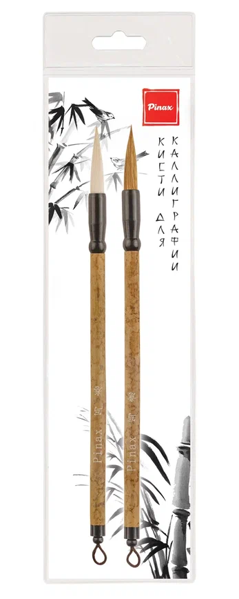 В наборе 2 кисти для каллиграфии из ворса пони и козы на бамбуковой ручке. Длинный упругий натуральный волос позволяет набирать много воды и контролируемо отдавать её. Кисть хорошо набирает краску, мягко отвечает на каждое движение художника. Качественная сборка позволяет кисти держать острую вершинку для создания самых тонких элементов.