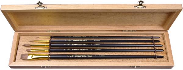 Комплектация: в набор входит 5 кистей из волоса колонка (круглые №1, 3, 6 и плоские №7, 14). Набор упакован в подарочную коробку из бука. Характеристика: кисти, входящие в этот набор изготовлены из натурального волоса сибирского колонка. Такой ворс является одним из самых лучших для производства художественных кистей. Волос колонка толще беличьего (его толщина достигает 0,15 мм) и более упругий и эластичный. Кисти, входящие в данный набор, изготовлены на длинной черной матовой ручке с обоймой из анодированного алюминия. Применение: кисти из такого материала используются для работ с акварельными и масляными красками. На усмотрения художника кисти могут использоваться для работ другими художественными материалами. Данный набор станет отличным подарком для художника. Производство: изготавливаются под брендом Roubloff, который был основан в 1988 году в Кировской области (Россия). Кировская область – один из центров народных промыслов в России. Здесь же занимаются разведением пушных зверей, чей мех является идеальным материалом для кистей. Продукция бренда Roubloff – кисти самого разного назначения, размера и формы. Весь материл, используемый при производстве продукции, проходит отбор, чтобы каждый клиент получил лучшие кисти для своих работ. Кисти марки Roubloff являются одними из лучших в России.