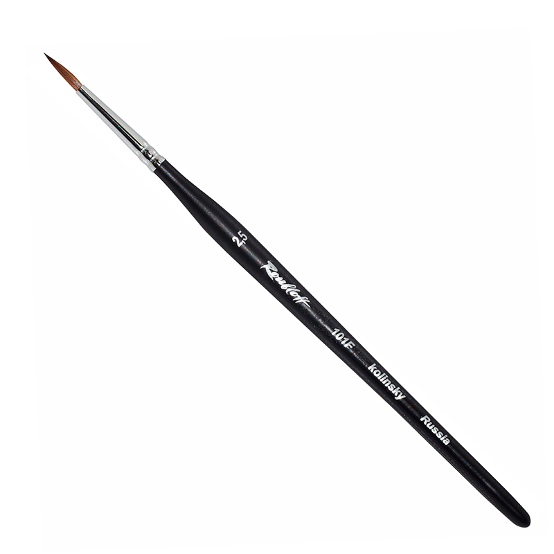 О серии: кисти серии «101F» изготавливаются из волоса колонка. Серия кистей представлена размерным рядом от №00 до №6. Характеристика: кисти изготавливаются из тщательно подобранного колонкового ворса. Толщина волоса колонка достигает 0,15 миллиметров. Такой ворс отличается высоким качеством и сочетает в себе лучшие свойства. Ворс хорошо впитывает влагу (краску). Ворс достаточно мягкий и в меру упругий. Пучок кистей серии «101F» имеет круглую форму с заостренным кончиком. Кисти выполнены на фигурной короткой ручке черного цвета. Крепление пучка к древку кисти выполнено медной хромированной обоймой. Применение: используется для выполнения работ водорастворимыми красками и маслом. На усмотрение художника возможно использование с другими художественными материалами. Производство: изготавливаются под брендом Roubloff, который был основан в 1988 году в Кировской области (Россия). Кировская область – один из центров народных промыслов в России. Здесь же занимаются разведением пушных зверей, чей мех является идеальным материалом для кистей. Продукция бренда Roubloff – кисти самого разного назначения, размера и формы. Весь материл, используемый при производстве продукции, проходит отбор, чтобы каждый клиент получил лучшие кисти для своих работ. Кисти марки Roubloff являются одними из лучших в России.