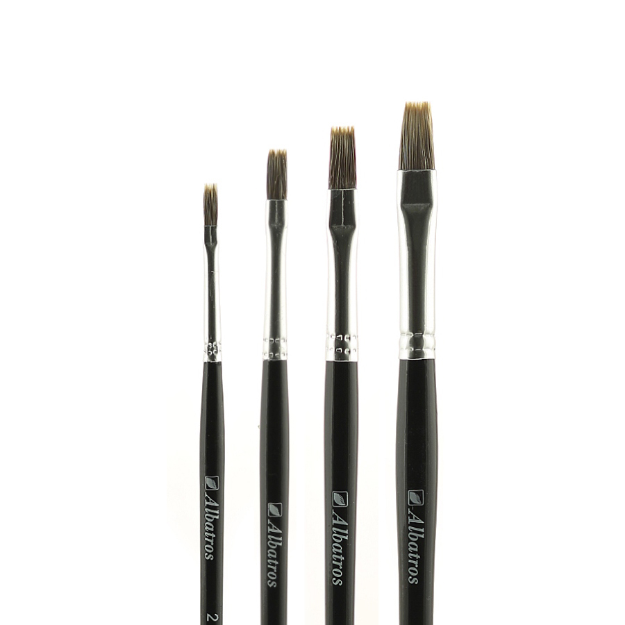О серии: кисти серии изготовлены из натурального ворса горного колонка. Данная линейка представлена кистями шести размеров от 2 до 8. Характеристика: для изготовления кисти использован тщательно подобранный ворс горного колонка высокого качества. Пучок кисти имеет плоскую форму, надежно закреплен цельнотянутой металлической обоймой на короткой деревянной ручке. Применение: кисти серии используются в акварельной живописи. На усмотрение художника могут использоваться для работы различными материалами. Производство: изготавливается компанией «Альбатрос», которая начала свою деятельность в 1989 году в городе Новосибирск. Компания хорошо зарекомендовала себя на рынке художественных товаром. Она постоянно работает над расширением своего ассортимента. Сегодня «Альбатрос» выпускает художественные кисти, холсты, ящики для красок и различные аксессуары для художников.