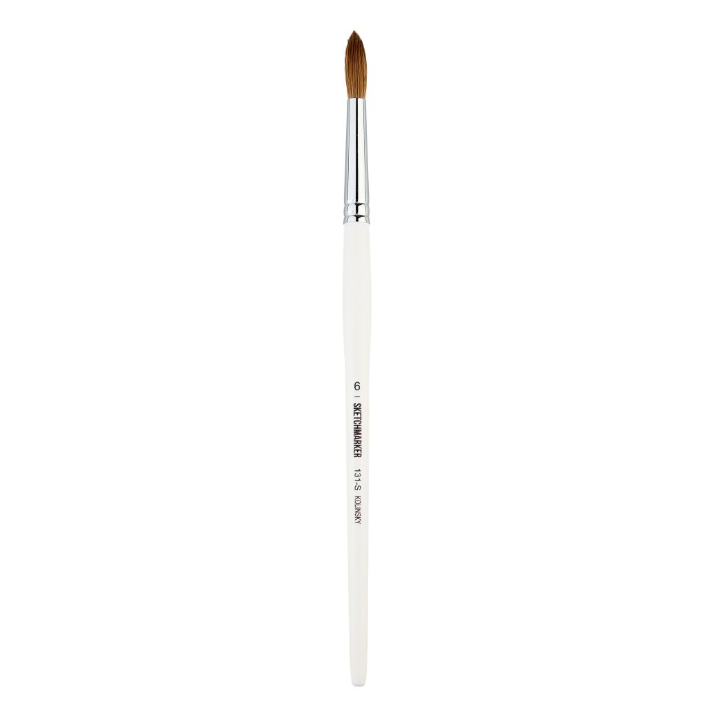 Кисти серии 131 от бренда Sketchmarker изготовлены ворса колонка. Колонковый ворс отлично подходит для работы акварелью и другими красками на водной основе, отлично впитывает и отдаёт краску. Пучок круглой формы универсален в применении и подойдет как для детальных прорисовок, так и для крупных мазков. Рабочая часть кисти закреплена металлической обоймой на короткой деревянной ручке.