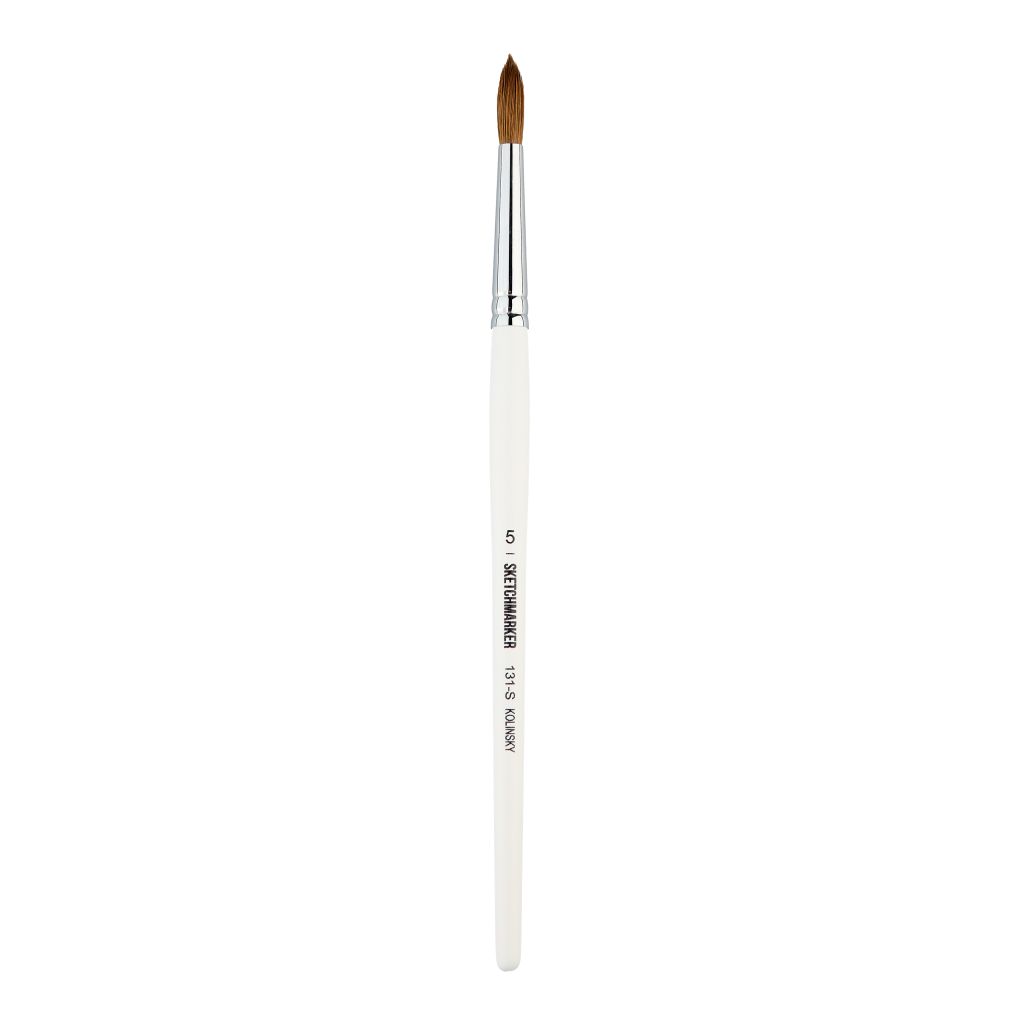 Кисти серии 131 от бренда Sketchmarker изготовлены ворса колонка. Колонковый ворс отлично подходит для работы акварелью и другими красками на водной основе, отлично впитывает и отдаёт краску. Пучок круглой формы универсален в применении и подойдет как для детальных прорисовок, так и для крупных мазков. Рабочая часть кисти закреплена металлической обоймой на короткой деревянной ручке.
