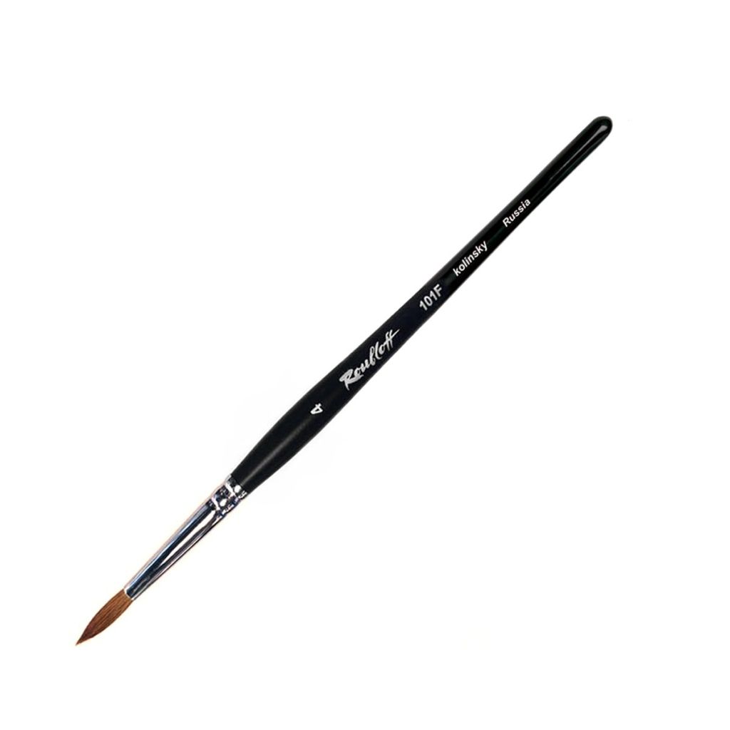 О серии: кисти серии «101F» изготавливаются из волоса колонка. Серия кистей представлена размерным рядом от №00 до №6. Характеристика: кисти изготавливаются из тщательно подобранного колонкового ворса. Толщина волоса колонка достигает 0,15 миллиметров. Такой ворс отличается высоким качеством и сочетает в себе лучшие свойства. Ворс хорошо впитывает влагу (краску). Ворс достаточно мягкий и в меру упругий. Пучок кистей серии «101F» имеет круглую форму с заостренным кончиком. Кисти выполнены на фигурной короткой ручке черного цвета. Крепление пучка к древку кисти выполнено медной хромированной обоймой. Применение: используется для выполнения работ водорастворимыми красками и маслом. На усмотрение художника возможно использование с другими художественными материалами. Производство: изготавливаются под брендом Roubloff, который был основан в 1988 году в Кировской области (Россия). Кировская область – один из центров народных промыслов в России. Здесь же занимаются разведением пушных зверей, чей мех является идеальным материалом для кистей. Продукция бренда Roubloff – кисти самого разного назначения, размера и формы. Весь материл, используемый при производстве продукции, проходит отбор, чтобы каждый клиент получил лучшие кисти для своих работ. Кисти марки Roubloff являются одними из лучших в России.