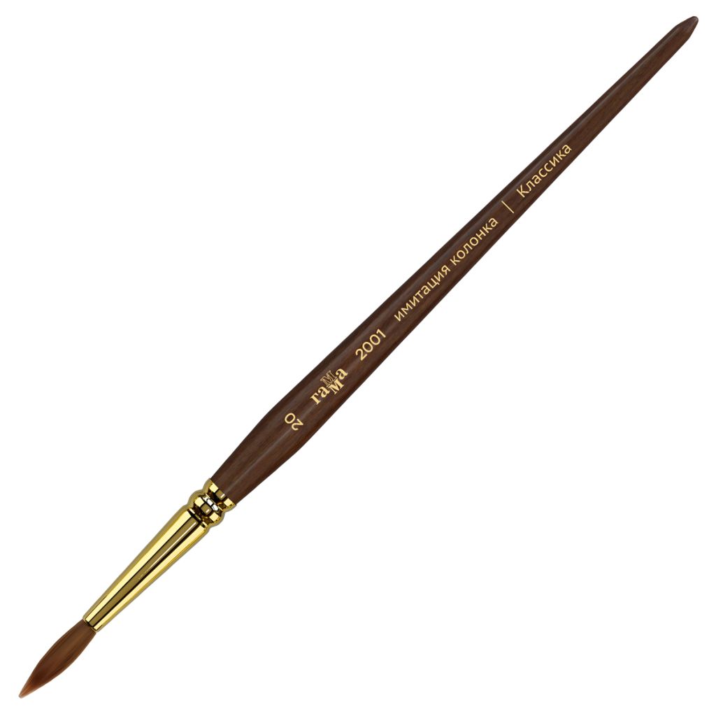 Художественные кисти «ГАММА» изготовлены из высококачественной синтетики, имитирующей ворс колонка. Изделия предназначены для работы с акварельными, гуашевыми и акриловыми красками. Кисть имеет свойствами натурального колонка, но при этом обладают повышенной износоустойчивостью. Кисть вяжут из волосков разной длины, что позволяет при соприкосновении наполненной кисти с поверхностью создать капиллярный поток краски.