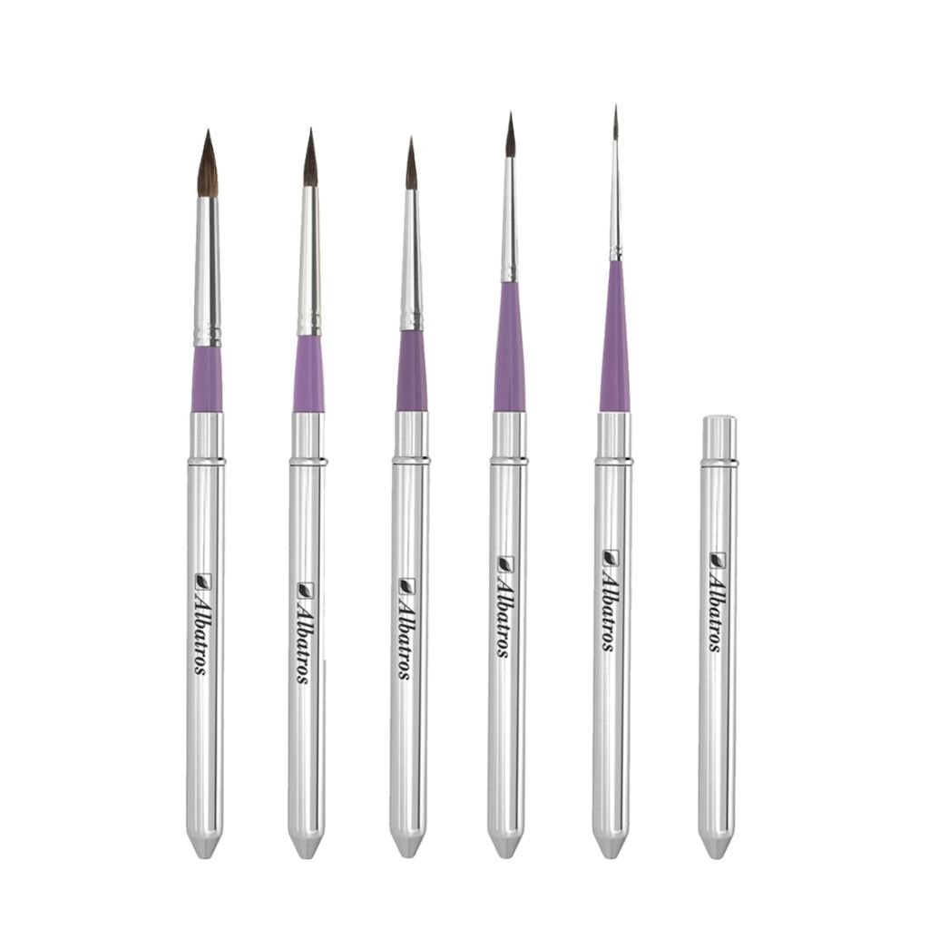 О серии: профессиональные кисти для акварельной живописи. Кисти изготавливаются профессиональными мастерами и только из тщательно подобранного натурального ворса. Особенностью данной серии является наличие футляра, который накручивается в качестве ручки кисти. По завершению работы, рабочая часть кисти отделяется и помещается внутрь полой металлической ручки. Такая особенность делает кисти данной серии идеальными для работы на пленэрах и вне студии. Характеристика: кисти изготавливаются из тщательно подобранного натурального ворса соболя. Особенностью такого волоса является разная толщина волосинок у основания и у кончика – вершинка более тонкая и заострена. Кисти из такого ворса хорошо набирают краску, а при соприкосновении с рабочей поверхностью образуют равномерный капиллярный поток краски. Ворс кистей упругий. Кисти выполнены с пучком круглой формы. В зависимости от номера кисти, ее диаметр варьируется от 1 до 5 мм. Применение: серия разработана для выполнения работ в техниках акварельной живописи. Подходит для профессионального использования.