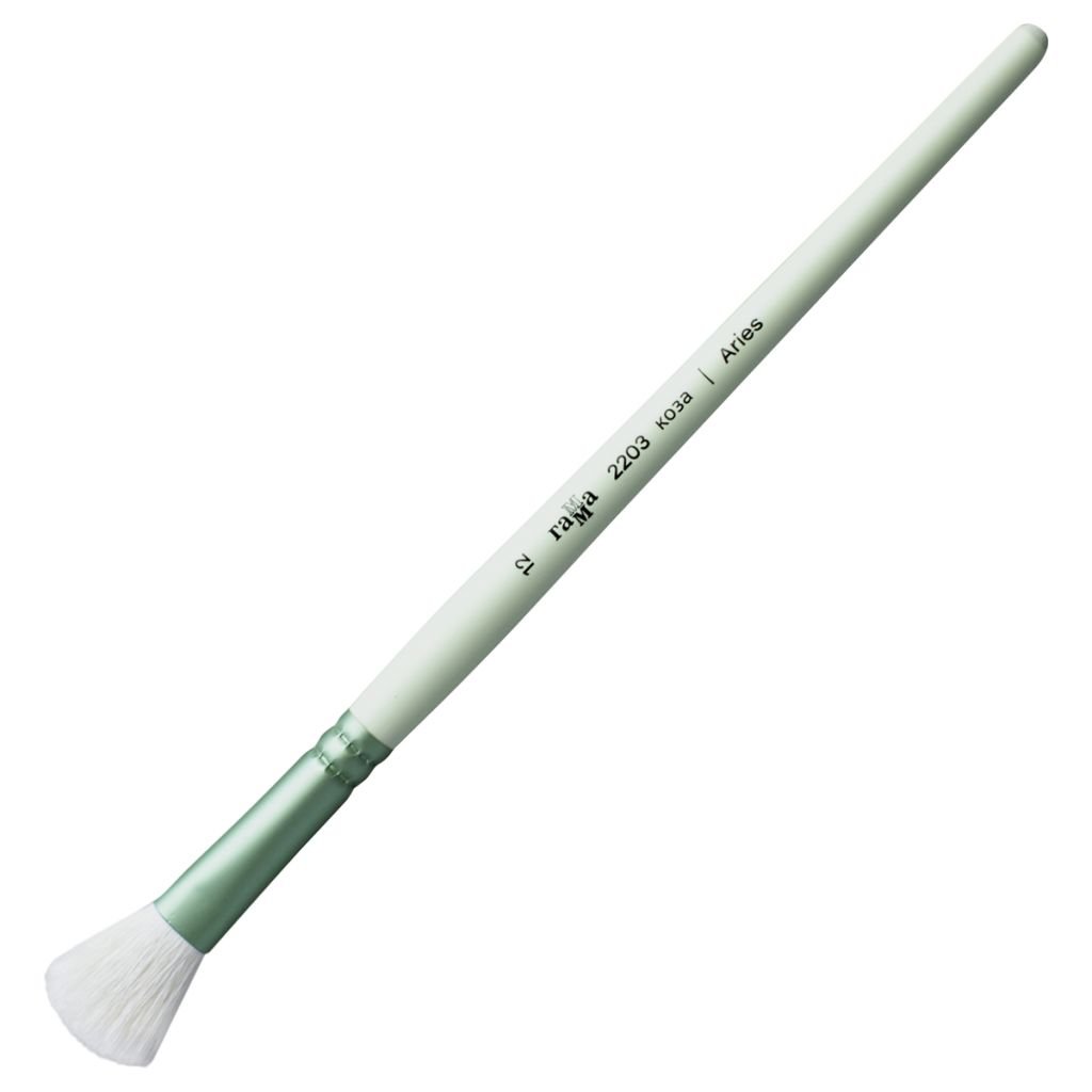 Художественные кисти «ГАММА» серии Aries выполнены из белого волоса волоса козы и деревянной ручки нежно-зеленого цвета. У кистей плотная набивка, за счет этого можно делать заливки, а тонкий кончик прорисовывает тончайшие детали. Кисти овальной формы подойдут для фоновых заливок и для фактурных мазков. Ворс козы берет в себя много воды. Такой кистью можно работать с большими объемами цвета, а также очень удобно использовать ее для фактурных мазков.