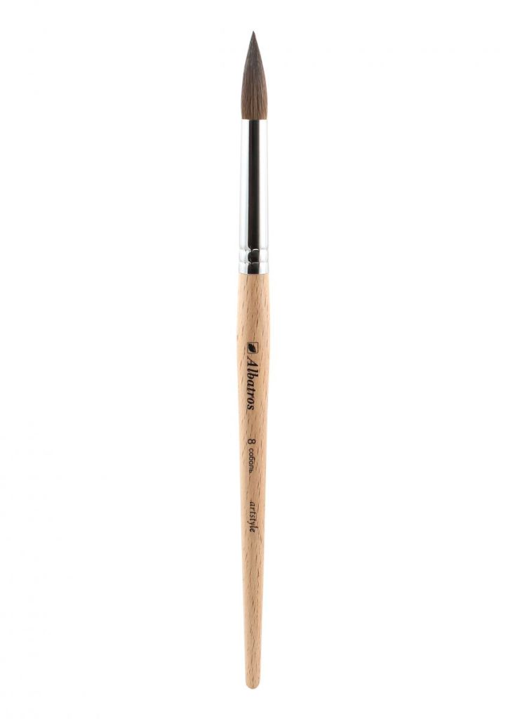 О серии: кисти серии «Artstyle» - это кисти изготовленные из соболиного ворса. Серия представлена кистями круглой формы на короткой ручке. Характеристика: данные кисти изготовлены из натурального волоса соболя. Для производства кистей этой серии используется только высококачественный ворс. Кисти мягкие и эластичные. Пучок кистей круглой формы. Диаметр пучка, в зависимости от номера кисти, варьируется от 1 до 7 миллиметров. Обойма кистей цельнотянутая. Кисти произведены на короткой деревянной ручке покрытой бесцветным лаком. Применение: кисти из соболиного ворса предназначены для работы различными видами красок. Производство: изготавливается компанией «Альбатрос», которая начала свою деятельность в 1989 году в городе Новосибирск. Компания хорошо зарекомендовала себя на рынке художественных товаром. Она постоянно работает над расширением своего ассортимента. Сегодня «Альбатрос» выпускает художественные кисти, холсты, ящики для красок и различные аксессуары для художников.