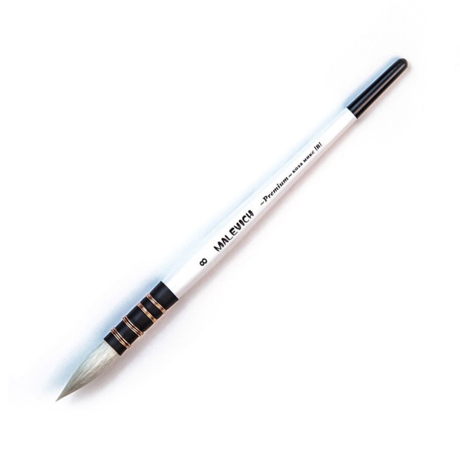Круглые кисти для акварели из козы-микс "Premium" от Малевичъ это – кисти для профессиональной работы акварелью, каллиграфии и китайской живописи. Микс натурального козьего ворса и специальной мягкой синтетики позволяет получить управляемую кисть, которая держит много воды и краски. Тонкий кончик позволяет прорабатывать мелкие детали, а большой объем пучка удобен для заливок. Французский тип крепления пучка, ручная скрутка. Лакированная березовая ручка белого цвета длиной 15см.