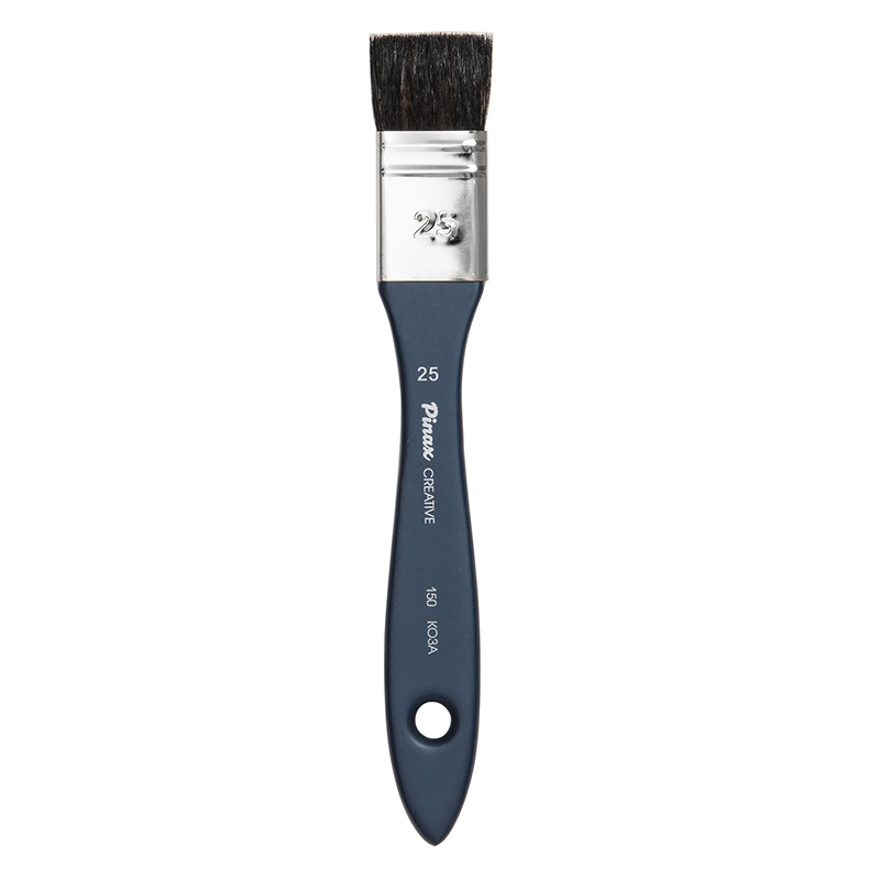 О серии: серия кистей «Creative 150» представлена флейцами из черного волоса козы. В серию входят кисти следующих номеров: № 25, 30, 40, 50 и 75. Номер кисти соответствует ее ширине (в миллиметрах). Все кисти выпускаются поштучно. Характеристика: для изготовления кистей «Creative 150» использован черный волос козы, который прошел специальную подготовку. Такой материал обладает умеренной жесткостью (он жестче ворса белки, но значительно мягче щетины). Пучок кистей плоский широкий. Крепление ворса к ручке выполнено медной хромированной обоймой. Ручки кистей выполнены из натуральной древесины, окрашены в синий цвет. Применение: кисти этой серии подходят для любителей и профессионалов. Кисти «Creative 150» практически универсальны в применении. Рекомендуются для работы с материалами на водной основе (акварель, темпера, гуашь). Производство: данный товар представлен брендом Pinax. Pinax — бренд художественных товаров, который представлен на российском рынке с начала XXI века. Изначально компания производила только кисти для художественных работ, но затем расширила свое производство и не потеряв качество своей продукции начала производить холсты, мольберты и аксессуары для художников. Сейчас ассортимент включает в себя большое количество наименований.