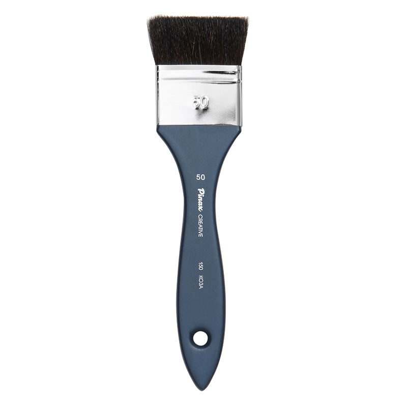 О серии: серия кистей «Creative 150» представлена флейцами из черного волоса козы. В серию входят кисти следующих номеров: № 25, 30, 40, 50 и 75. Номер кисти соответствует ее ширине (в миллиметрах). Все кисти выпускаются поштучно. Характеристика: для изготовления кистей «Creative 150» использован черный волос козы, который прошел специальную подготовку. Такой материал обладает умеренной жесткостью (он жестче ворса белки, но значительно мягче щетины). Пучок кистей плоский широкий. Крепление ворса к ручке выполнено медной хромированной обоймой. Ручки кистей выполнены из натуральной древесины, окрашены в синий цвет. Применение: кисти этой серии подходят для любителей и профессионалов. Кисти «Creative 150» практически универсальны в применении. Рекомендуются для работы с материалами на водной основе (акварель, темпера, гуашь). Производство: данный товар представлен брендом Pinax. Pinax — бренд художественных товаров, который представлен на российском рынке с начала XXI века. Изначально компания производила только кисти для художественных работ, но затем расширила свое производство и не потеряв качество своей продукции начала производить холсты, мольберты и аксессуары для художников. Сейчас ассортимент включает в себя большое количество наименований.