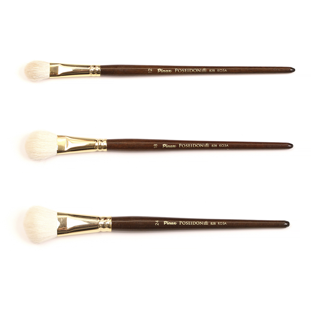О серии: Poseidon 828 - это кисть из натурального отбеленного ворса козы овальной формы. Кисть оснащена медной втулкой золотого цвета, короткая ручка (европейский стандарт 165 мм) выполнена из березы, покрашена под орех и покрыта глянцевым лаком. Применение: кисти серии подходят для художественных работ, декоративно-оформительского творчества и хобби. Производство: данный товар представлен брендом Pinax. Pinax — мировой бренд товаров, который представлен на российском рынке с начала XXI века. Изначально компания производила только кисти для художественных работ, но затем расширила свое производство и не потеряв качество своей продукции начала производить холсты, мольберты и аксессуары для художников. Сейчас ассортимент включает в себя большое количество наименований.