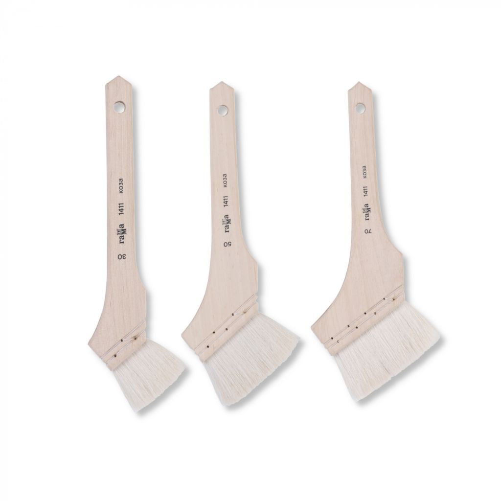Кисть-хейк — плоская кисть из мягкого тонкого ворса козы предназначена для нанесения широких слоев краски одним мазком, идеальна для акварельных заливок и создания фонов. Хейки подходят для акварельной живописи, способны удерживать большое количество воды и всего несколькими движениями можно создавать большие по площади заливки. Кисти с уникальным японским креплением. Волосяной пучок вставляется в деревянную ручку и закрепляется с помощью шелковой нити. Номер кисти соответствует ширине пучка.