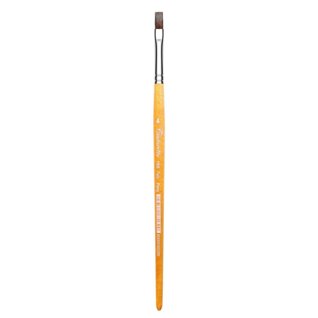 Кисти из ворса пони это бюджетная альтернатива кистям из бычьего ворса, главным свойством таких кистей является мягкость. Такие кисти популярны у новичков и студентов художественных школ, часто используются детьми, они не подходят для написания точных тонких линий, но иlеально подходят для лессировок и фоновых заливок. Кисть закреплена никелированной латунной обоймой на короткой деревянной ручке.