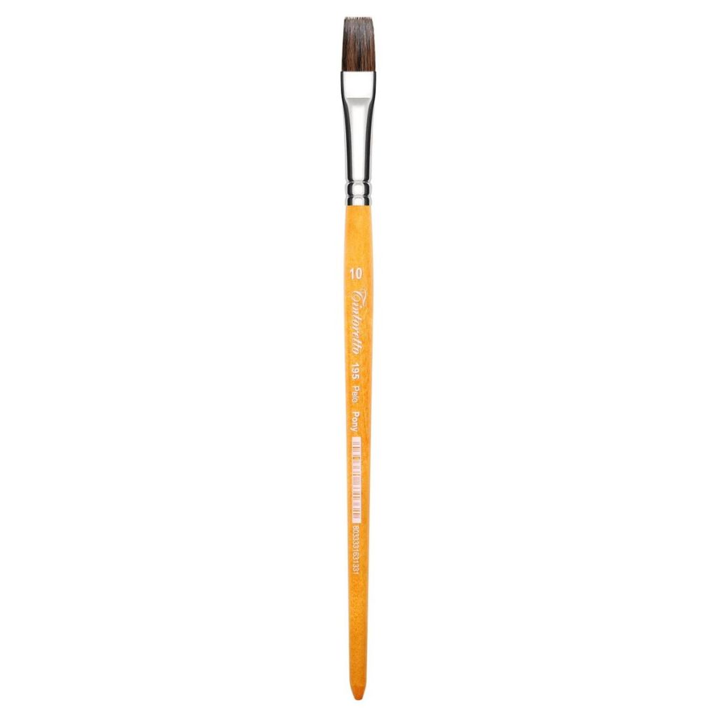 Кисти из ворса пони это бюджетная альтернатива кистям из бычьего ворса, главным свойством таких кистей является мягкость. Такие кисти популярны у новичков и студентов художественных школ, часто используются детьми, они не подходят для написания точных тонких линий, но иlеально подходят для лессировок и фоновых заливок. Кисть закреплена никелированной латунной обоймой на короткой деревянной ручке.