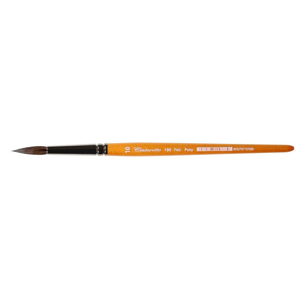 Кисти из ворса пони это бюджетная альтернатива кистям из бычьего ворса, главным свойством таких кистей является мягкость. Такие кисти популярны у новичков и студентов художественных школ, часто используются детьми, они не подходят для написания точных тонких линий, но идеально подходят для лессировок и фоновых заливок. Кисть закреплена никелированной латунной обоймой на короткой деревянной ручке.