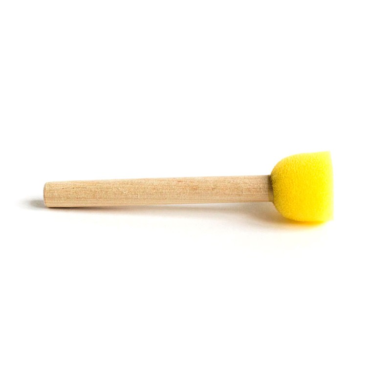 Рабочая поверхность кисти изготовлена из поролона (мягкий эластичный пористый материал напоминающий губку). Рабочая поверхность круглой формы. Кисть-губка изготавливается на короткой деревянной ручке. Такие кисти подходят для трафаретного окрашивания различных поверхностей и для декоративных работ.