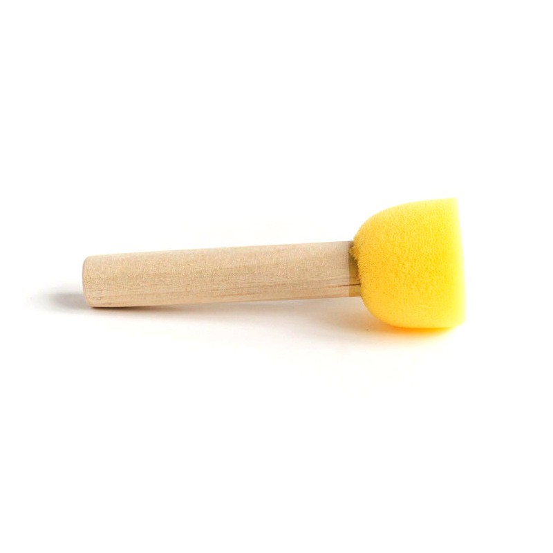 Рабочая поверхность кисти изготовлена из поролона (мягкий эластичный пористый материал напоминающий губку). Рабочая поверхность круглой формы. Кисть-губка изготавливается на короткой деревянной ручке. Такие кисти подходят для трафаретного окрашивания различных поверхностей и для декоративных работ.