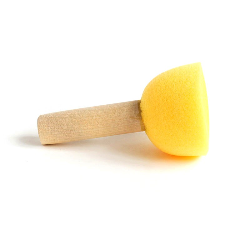 Рабочая поверхность кисти изготовлена из поролона (мягкий эластичный пористый материал напоминающий губку). Рабочая поверхность круглой формы. Кисть-губка изготавливается на короткой деревянной ручке. Такие кисти подходят для трафаретного окрашивания различных поверхностей и для декоративных работ.