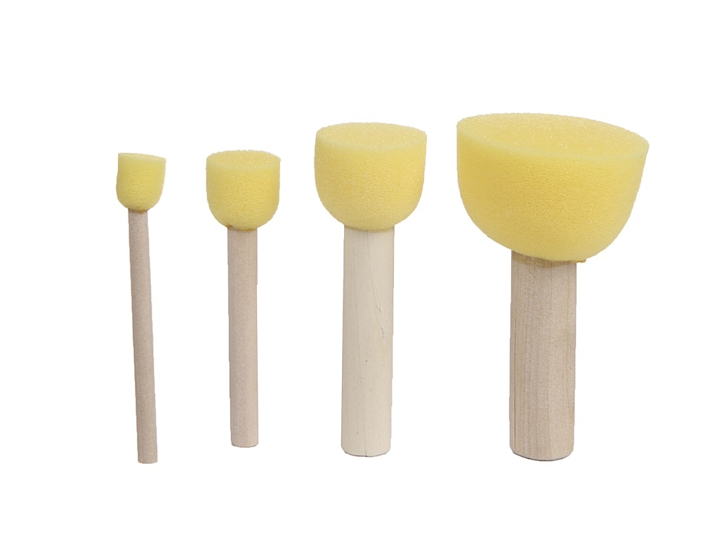 Поролоновая губка на деревянной ручке, диаметр 13, 20, 30 и 50 мм. Используется для нанесения краски на поверхность, особенно удобно использовать с трафаретами.