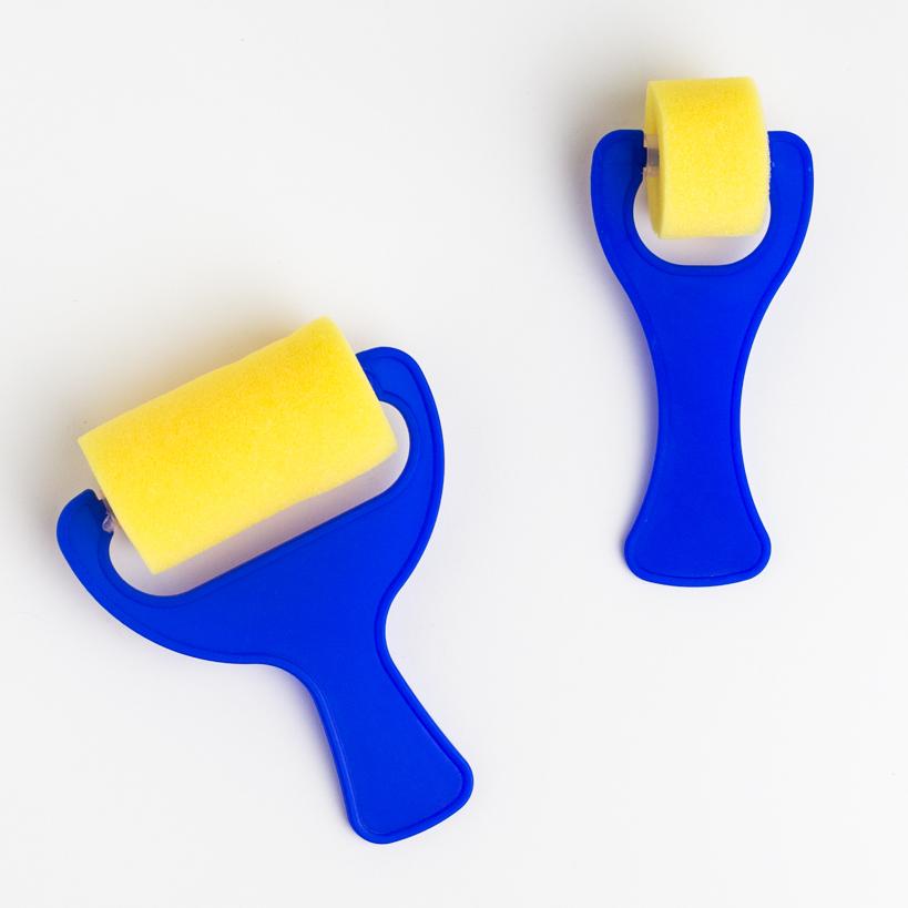 Набор поролоновых валиков на пластиковой ручке, ширина 25 и 70 мм. Используется для нанесения краски на поверхность. Можно использовать с любыми видами красок.
