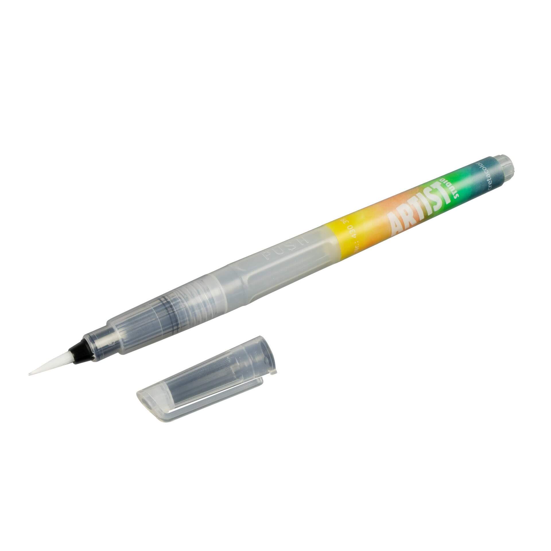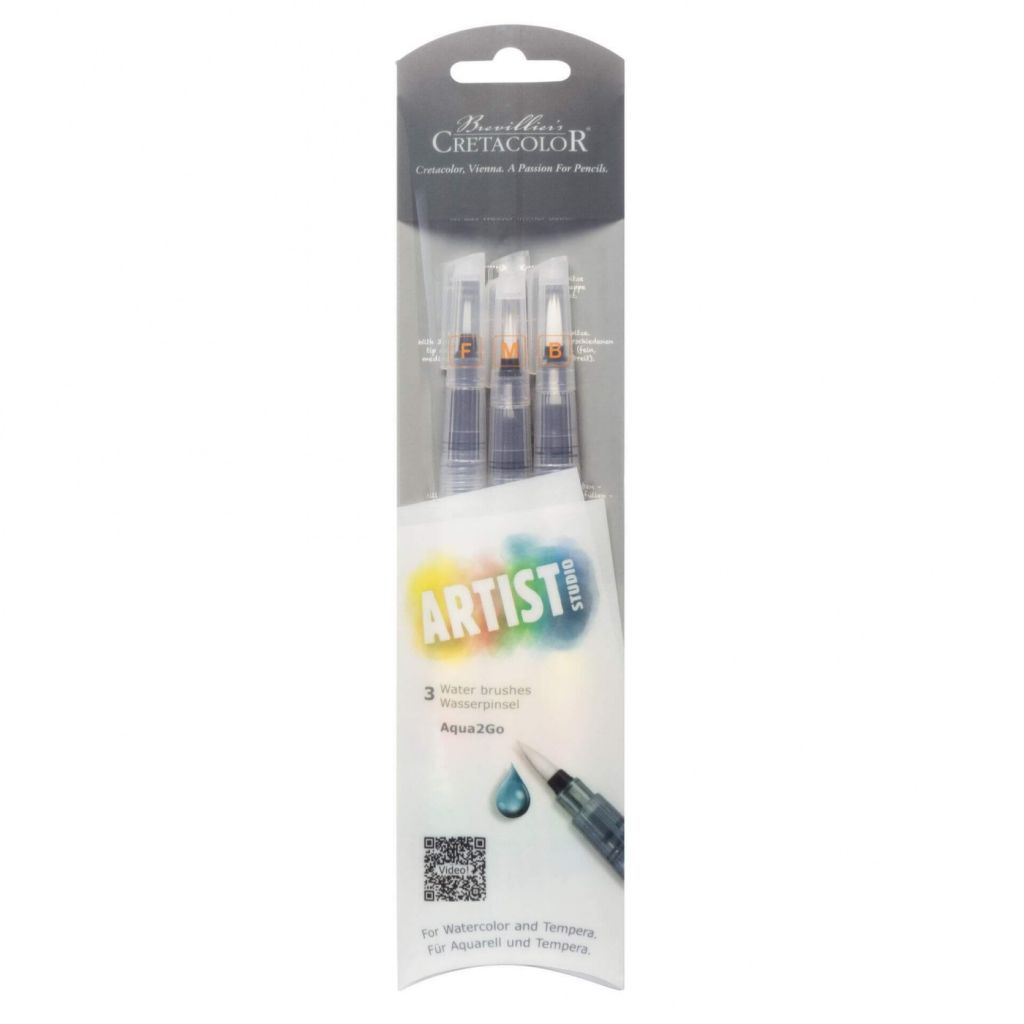 В наборе 3 кисти с резервуаром с различной толщиной ворса. Кисти с резервуаром — это незаменимый инструмент для работы с красками на пленэрах и в путешествиях. Вы также можете наполнить кисти чернилами или уже разведенной краской. Необходимое количество воды регулируется силой нажатия на корпус.