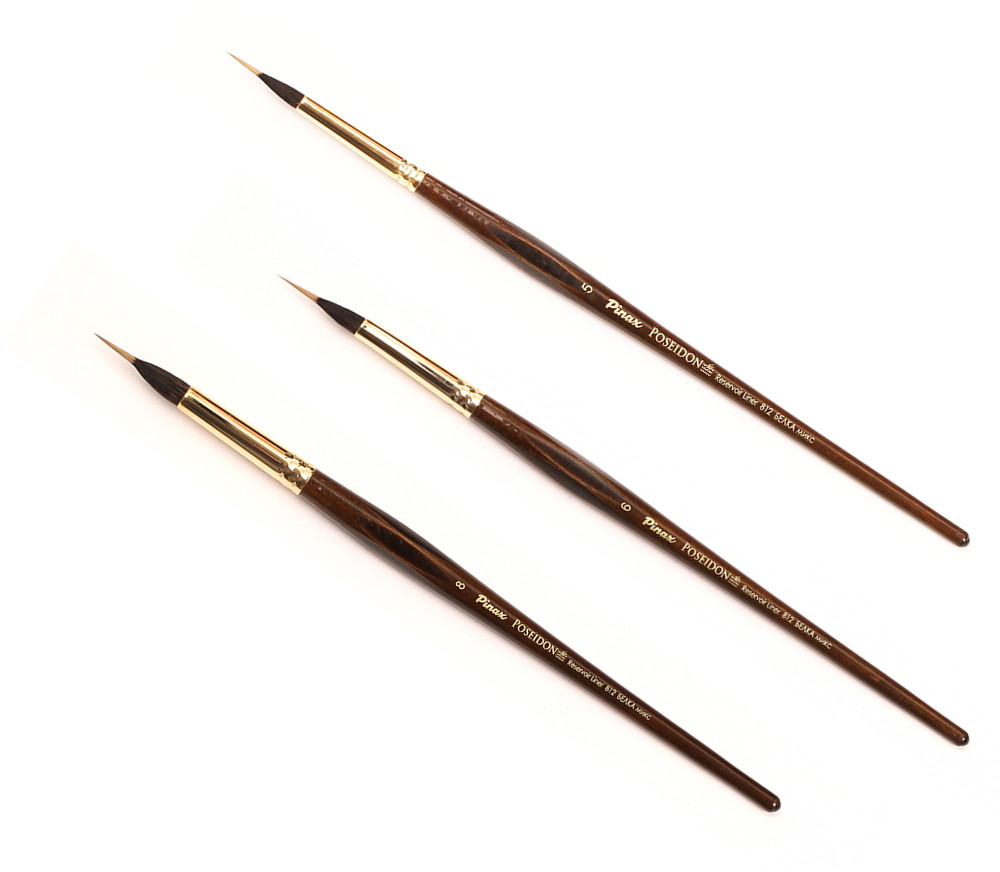 О серии: Poseidon 812 - это кисти лайнер с резервуаром из натурального волоса белки производства Pinax, рабочая часть, кончик кисти выполнен из синтетики имитируещей волос колонка, японского производства. Пучок-резервуар такой кисти хорошо удерживает воду, а тонкий кончик идеален для тонких линий и проработки деталей. Кисть оснащена медной втулкой золотого цвета, короткая ручка (европейский стандарт 165 мм) выполнена из березы, покрашена под орех и покрыта глянцевым лаком. Применение: кисти серии подходят для художественных работ, декоративно-оформительского творчества и хобби. Производство: данный товар представлен брендом Pinax. Pinax — мировой бренд товаров, который представлен на российском рынке с начала XXI века. Изначально компания производила только кисти для художественных работ, но затем расширила свое производство и не потеряв качество своей продукции начала производить холсты, мольберты и аксессуары для художников. Сейчас ассортимент включает в себя большое количество наименований.