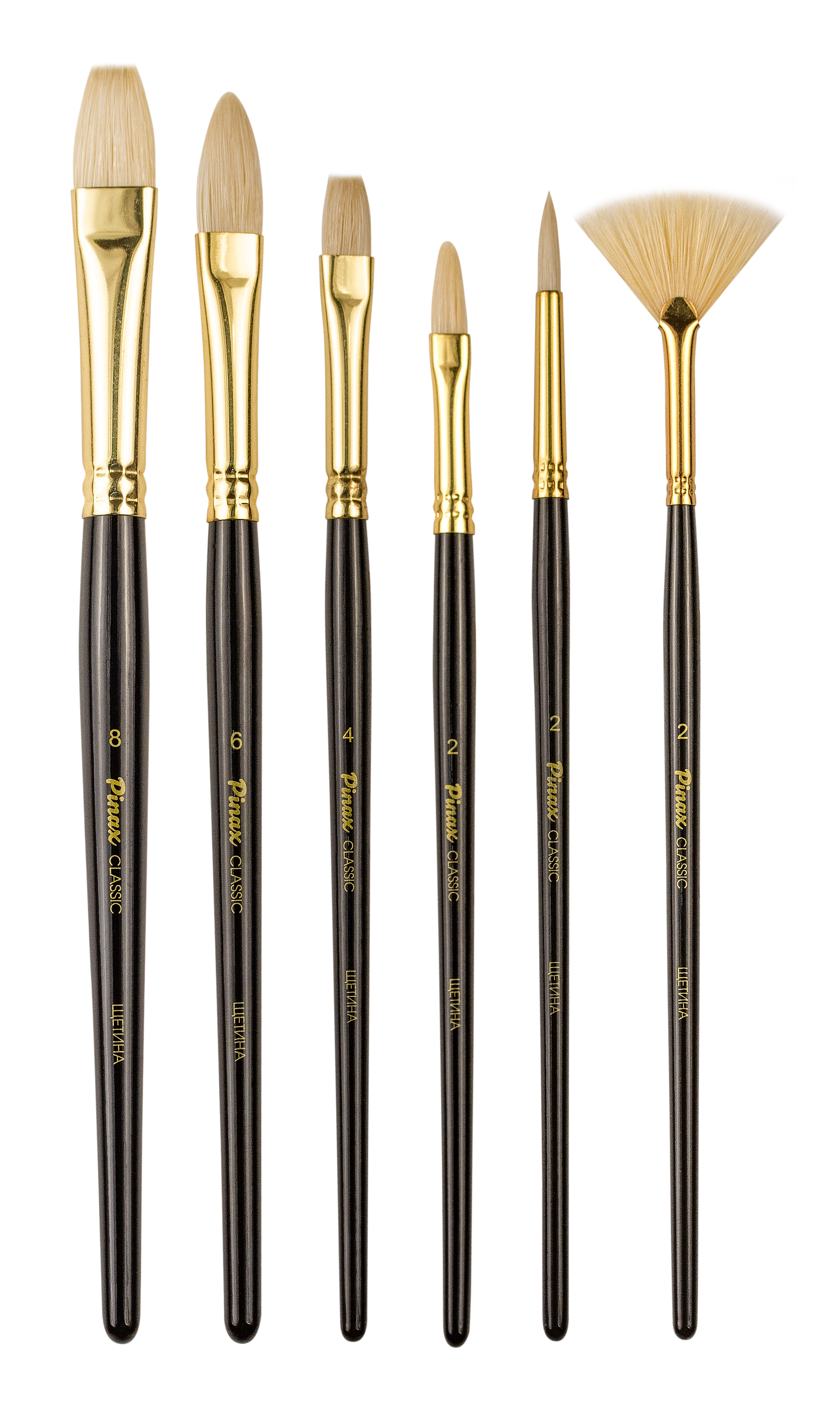 В производстве кистей данной серии используется лучшая щетина китайского борова из провинции Chungking (Китай), отбеленная и очищенная специальным химическим составом. Волоски подобраны вручную и направлены к центру (конструкция interlocked), благодаря чему кисть даже после продолжительного использования не потеряет свою форму. В пучке около 80% волосков с расщепленным кончиком. Поэтому кисть хорошо наполняется пигментом и отдает краску. Упругий и прочный свиной волос отлично подходит для работы с тяжелыми масляными и акриловыми красками. Щетина износоустойчива к сильным растворителям.