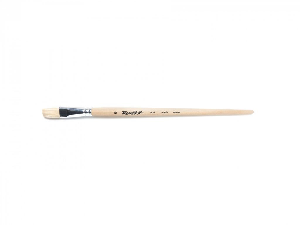 О серии: серия кистей «1622» представляет собой плоские кисти из щетины. В серии представлены кисти от №4 до №36. Характеристики: кисти серии «1622» производятся из специализированной щетины прошедшей обработку. Ворс щетины, используемый для художественных кистей, напоминают по своей форме волоски колонка. Волоски имеют одинаковый диаметр и заострены к верху. Дополнительную упругость и жесткость волоскам придает то, что они прошли дополнительную обработку и отбелены. Кисть имеет пучок плоской формы. Крепление ворса к черенку осуществлено за счет алюминиевой обоймы. Кисть выполнена на длиной пропитанной лаком ручке. Применение: кисти этой серии применяются для колеровки, нанесения фона или прорисовки фигур прямоугольных форм. Щетина позволяет набирать на кисть большее количество краски и удерживать ее, что позволяет прекрасно работать с темперой, акрилом или маслом. Производство: изготавливаются под брендом Roubloff, который был основан в 1988 году в Кировской области (Россия). Кировская область – один из центров народных промыслов в России. Здесь же занимаются разведением пушных зверей, чей мех является идеальным материалом для кистей. Продукция бренда Roubloff – кисти самого разного назначения, размера и формы. Весь материл, используемый при производстве продукции, проходит отбор, чтобы каждый клиент получил лучшие кисти для своих работ. Кисти марки Roubloff являются одними из лучших в России.