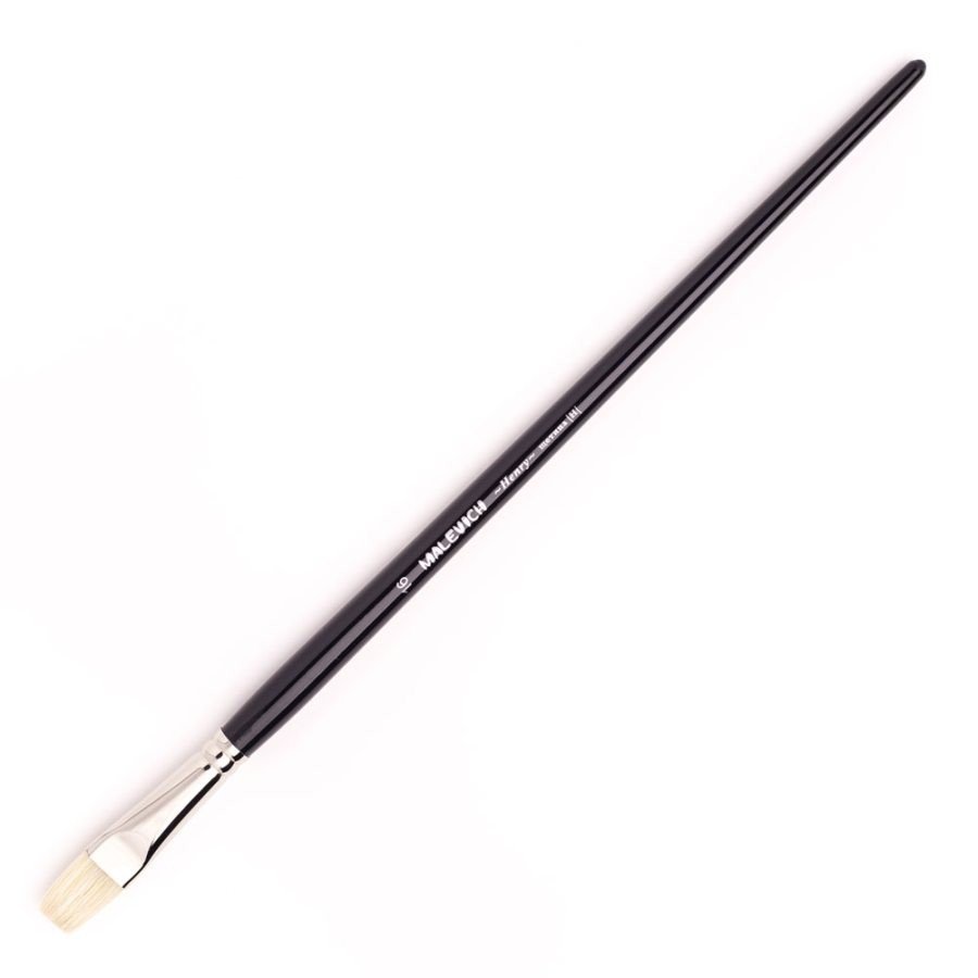 Кисти серии "Henry" производятся из натуральной свиной щетины самого высокого качества (Interlocked Chungking bristle). Благодаря расщепленному кончику кисть хорошо впитывает и разносит краску. Короткая выставка позволяет делать короткие, упругие мазки и работать с густой краской. Кисти закреплены на классической длиной ручке из березы покрытой черным лаком, обойма из латуни с покрытием никель-хром. Идеальны для пастозной живописи маслом и акрилом. Номер кисти соответствует диаметру в миллиметрах.