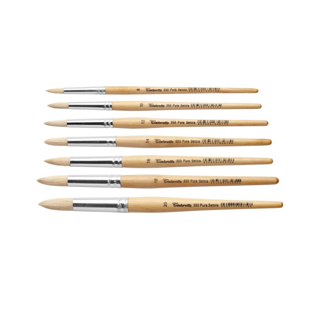Кисти из натуральной щетины с круглой формой пучка на короткой деревянной ручке. Кисти обладают средней жесткостью, отлично подойдут для работы масляными и акриловыми красками в пастозной технике.